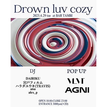映画とファッションが交差するDJイベント「Drown luv cozy」、4/29(火)恵比寿にて開催