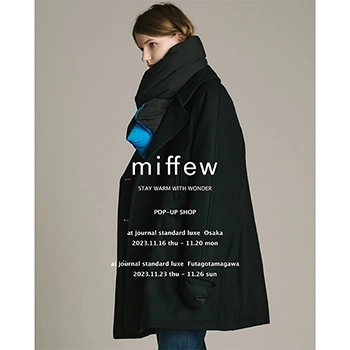 ダウンブランドmiffewがjournal standard luxe⼤阪とjournal standard luxe⼆⼦⽟川店の2店舗でPOP-UP SHOPを開催