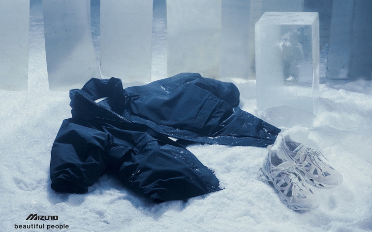 beautiful people × Mizunoコラボレーション第二弾、 新色スニーカーと上下逆さにしても着られるダウンジャケットを発売。