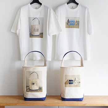 現代美術家の野村浩の油画作品“Merandi”をモチーフに、ウェアブランドRIVORAとバッグブランドTEMBEAとのトリプルコラボ商品が発売