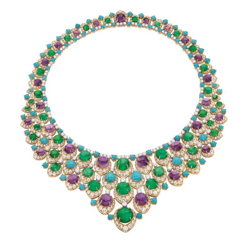 《「ビブ」ネックレス》 ゴールド、プラチナ、エメラルド、アメシスト、ターコイズ、ダイヤモンド 1968年 リン・レブソン旧蔵 ブルガリ・ヘリテージ・コレクション