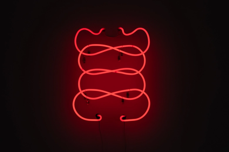 「Obol」は、古代の神話、秘教文献、地下レイヴの美学を横断しながら、未来の冥界をクラブ空間として再構築するインスタレーション展示だ。展覧会タイトルでもある「Obol」は、冥界の渡し守カロンに支払う銀貨の名前。その象徴を中心に、儀式的で生成的な図像や蛇、「瀝青(れきせい)」といった素材が空間を満たし、粘性と反響を孕んだ音像とともに、静かで妖艶な別世界が浮かび上がる。
