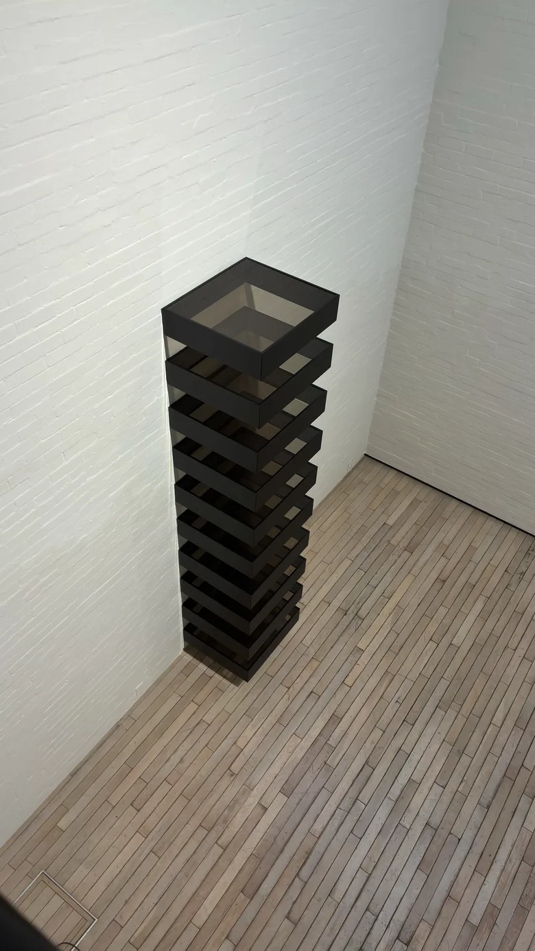 壁面に沿って同じ形状のユニットが垂直に反復される「スタック」において、重要なのは形ではなく配置だ。均質な構造だからこそ、わずかな位置の違いがそのまま体験の差として現れる。