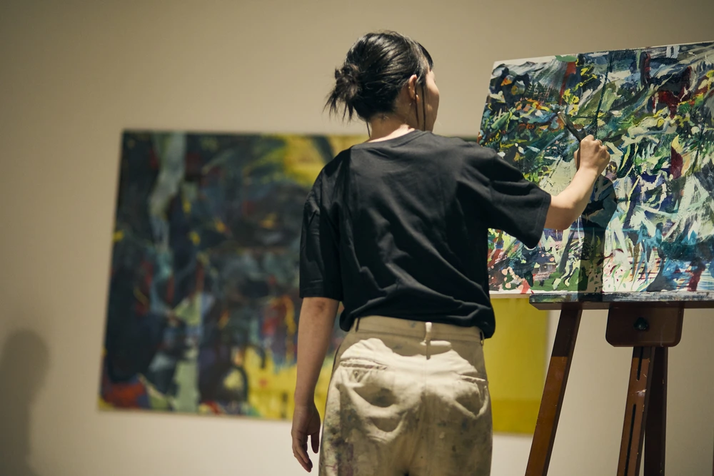 私にとっては、描く中で「掘り出していく」ような感覚がとても大切なんです。そして、頭の中にあるイメージをキャンバス上にそのまま再現しても、なかなか期待を超えるものにはならないんですよね。なぜなら、そこには「自分自身の驚き」が欠けてしまうから。私は制作を「絵とのキャッチボール」と表現することもあるのですが、そのキャッチボールを続けるなかで、思いがけない発見や驚きが生まれることが、私にとって何よりも重要なんです。