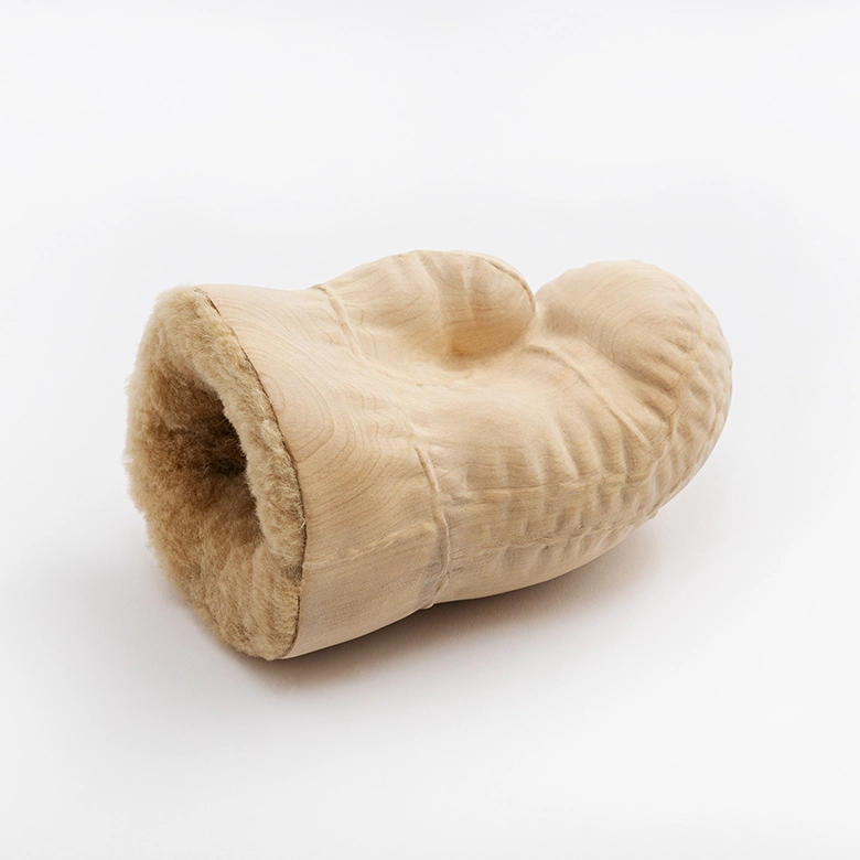 山西:大学で木と触れている中で、木目や、木肌の表面のフェティッシュな質感にとても魅力を感じるようになりました。でも、漆を塗ったらその美しい木肌が塗膜で覆覆われてしまう… わたしの中では、もったいない!と感じるようになったんです。そこで、木を塗膜で覆うのではなくて、木自体でその塗膜のようなイメージを作れないかと思い始めました。そういったところから、モチーフとしては、布や風船、枕のような、覆われているイメージのものにたどりついたんです。
