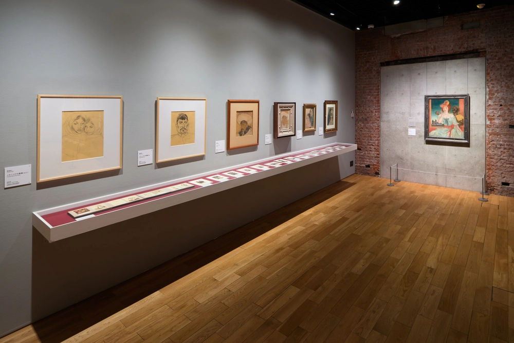 本展における中心的なテーマは「描く眼」と「撮る眼」の交差である。フジタは、自身の姿や旅の風景をカメラに収める一方で、写真を構図の素材として活用し、絵画へと再構築する創作を行っていた。つまり、彼の作品世界の背後には、写真という“もうひとつの視覚”が常に存在していたのである。