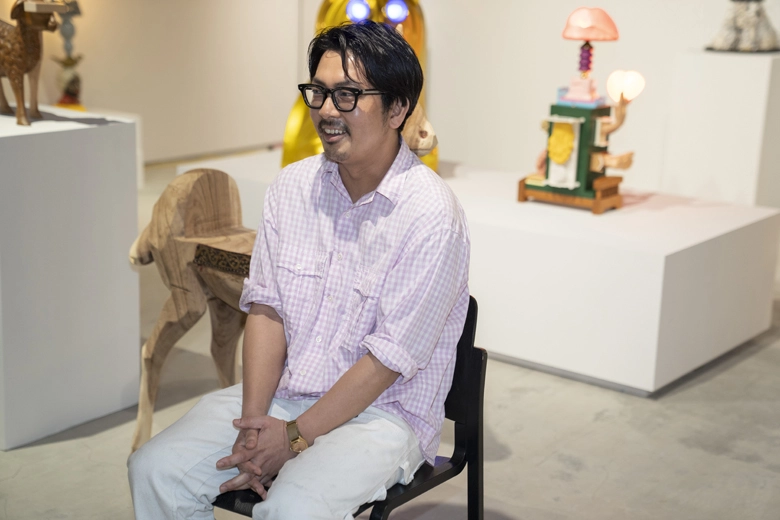 廃材や樹脂、電動器具などを組み合わせ創りだす独自の世界観で、作品制作にとどまらず家具やプロダクト、空間演出ディレクション・制作まで幅広く手がける。どこか懐かしさを覚えるアナログ感とクレイジーな色彩が融合した作品群は、国内外から注目を集めている。