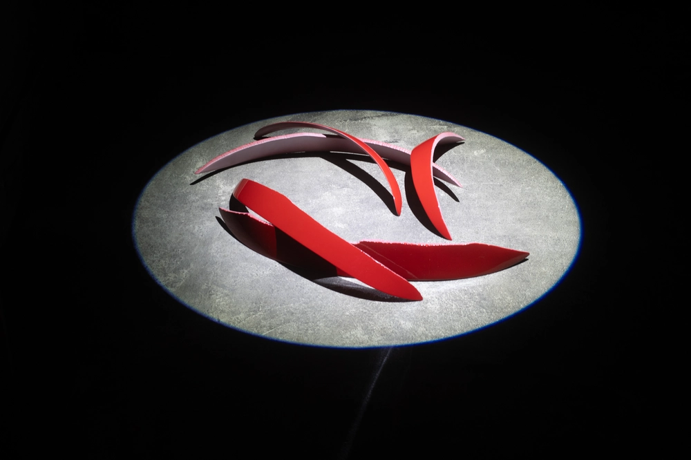 さらに地下に展示されている《Nail Clippings》では、巨大化され砕けた赤い付け爪が薄暗い空間に置かれている。美しく整えられるはずの爪が、ここでは砕けた断片として提示される。髪も爪も本来は身近で私的なものでありながら、身体から離れた瞬間にまったく別の存在へと変わる。