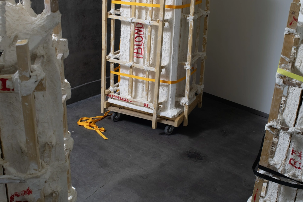 地下へ進むと、《Mould(S)》と《Torso》のシリーズが続く。ルーヴル美術館で目にした彫刻の「鋳造型」に興味を持ち、作品化したという《Mould(S)》は、本来なら完成品のための「裏方」であるはずのものに光を当てる。その型から生まれた《Torso》では、人の身体の断片(トルソ)がシリコンや石膏など、手触りや温度感の異なる素材によって形を与えられ、さまざまな肌の色で提示される。ここでも正面や裏は固定されず、どの角度から見てもよいものとして置かれている。完成された身体ではなく、断片化された身体、そしてその正解のない見方。そうした姿勢は、彼の表現に通底する感覚とも響き合っているように見える。