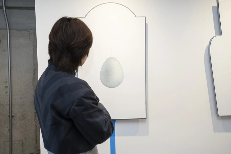 卵は“両面性”がある存在だと思うんですね。日常的で誰もが知っている存在だけど、その外観だけでは中身はわからないし、情報は何もない。具象的でありながら、真っ白で模様もなく、抽象的な物体にも見えますよね。しかも完全に殻で守られていて安全なのに、すごく脆くて壊れやすい。わたしはそういった卵の“両面性”に強くひかれています。