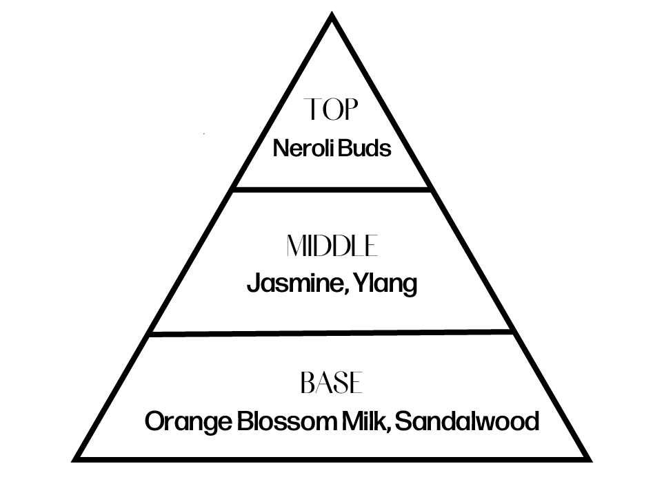 涼しげで清楚な白花の瑞々しさと乳白的な甘さが溶け合った、オレンジブロッサム系フローラル・ウッディ香。ネロリの優しい緑から始まり、クリーミーな甘い花々がそっと香って、オレンジブロッサムミルクとサンダルウッドが根底で包み込むような温かさを醸す。調香にあたった ダニエラ・ロッシュ=アンドリエ は、「自然からインスピレーションを得たオレンジブロッサムのデュアル性。柔らかく豊かなミルキーで熟した顔と、爽やかで明るい顔を併せ持つ」と表現している。