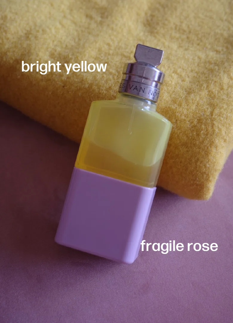 「ドリスの香水は、30歳の誕生日だったこともあり、思い出に残るだろうとパリ左岸のマラケ通りに位置する旗艦店で購入しました。重厚感のあるボトルは、芸術性と遊び心を感じさせるイエローとローズのツートンカラーで、持っているだけで明るい気持ちになれます。これは目上の方と会う機会や、気合を入れたい特別な場につけていくことが多いです。」