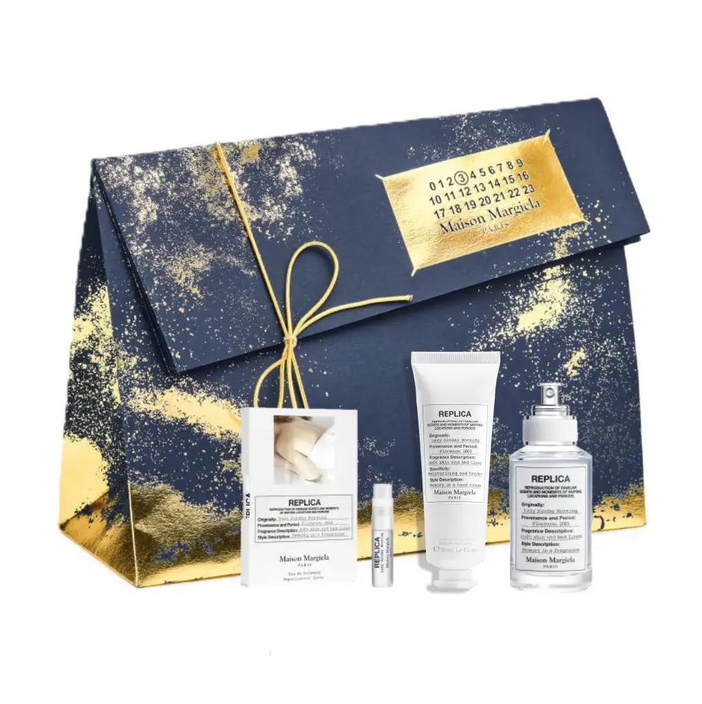 “記憶の香り”をテーマにした「レプリカ」シリーズから、ホリデー限定ギフトが登場。人気の「レイジーサンデー モーニング」を中心に、選べるフレグランスやハンドクリームまたはリップバームを特別パッケージにセット。洗練されたブランドの世界観とともに、穏やかな幸福感を届けてくれる心温まるコレクションだ。