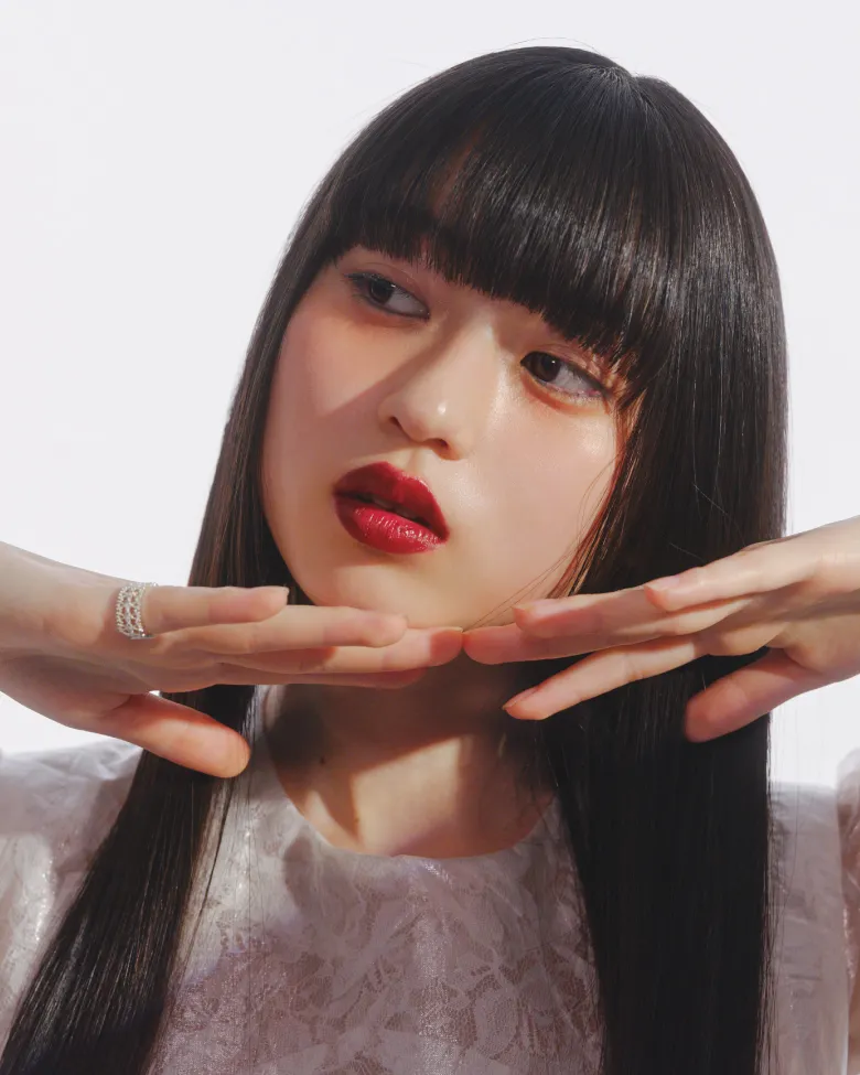 もし機会があれば赤髪にしてみたいです。Netflix映画『彼女』に登場する水原希子さんのヘアスタイルに憧れがあって。ただ、いまの前髪ぱっつんとストレートロングはかなり気に入っているので……しばらくはこのままでいくと思います。ちなみに中高生のときはショートやボブが定番でした。いつか戻る日がくるかも、しれないです。新しいメイクやお洋服が楽しめそうですもんね。