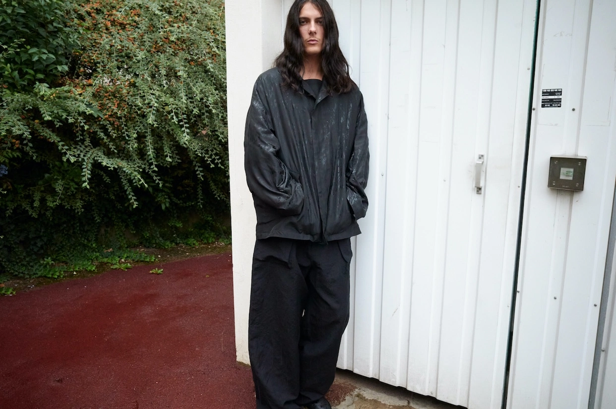 <BIBLIOTHERK(ビブリオテーク)>は、2022年に設立された日本のファッションブランド。「ニュートラルでアンニュイな人間像」をテーマに、静けさの中に潜む情緒を衣服で表現している。ブランド名は、ドイツ語で“図書館”を意味する「Bibliothek」に、デザイナー畑龍之介の頭文字「R」を加えた造語。アルゼンチン・ブエノスアイレス生まれ、東京・渋谷育ちの畑は、高校時代をオランダとドイツで過ごし、図書館で仲間と語り合いながらファッションに魅了された経験を原点に持つ。ドイツの伝統的なワークやミリタリーのディテール、そして当時感じた穏やかな時間の流れを、現代的な感性で再構築。複数の文化と記憶が重なり合うことで、<BIBLIOTHERK>のワードローブは静かな強さを帯びる。