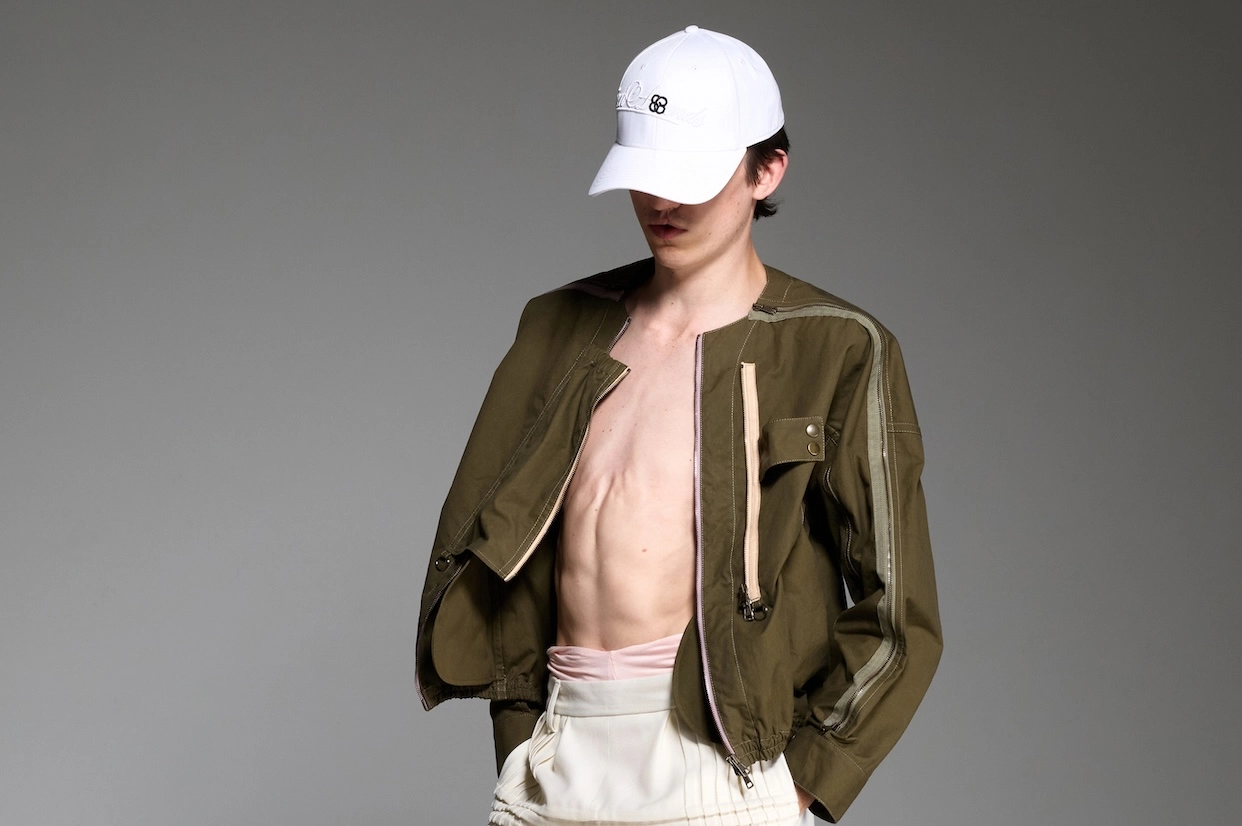 <STEFAN COOKE(ステファン クック)>は、2017年にデザイナーのステファン・クックとそのパートナー、ジェイク・バートによって設立されたロンドンを拠点とするファッションブランド。二人はセントラル・セント・マーチンズの修士過程で出会い、ステファン・クックは卒業コレクションで「L'Oréal Professionnel Creative Award」、2018年には「H&Mデザイン賞」を受賞し、LVMHプライズ2019のファイナリストでもある。日常的で退屈とされがちな「boring clothes(退屈な服)」を再構築し、独自の美学を加えながら昇華させることをコンセプトにしており、ルーツである英国の伝統的なデザインを最先端のデザインにまで押し上げることがこのデュオの得意とするアプローチ手法だ。アーガイル柄のニットにカットアウトを施したり、デニムの写真をプリントした伸縮素材を用いたトロンプルイユ効果と本来の素材とは逆の機能性をもたらしているアイテムなどユニークな発想を武器としている。