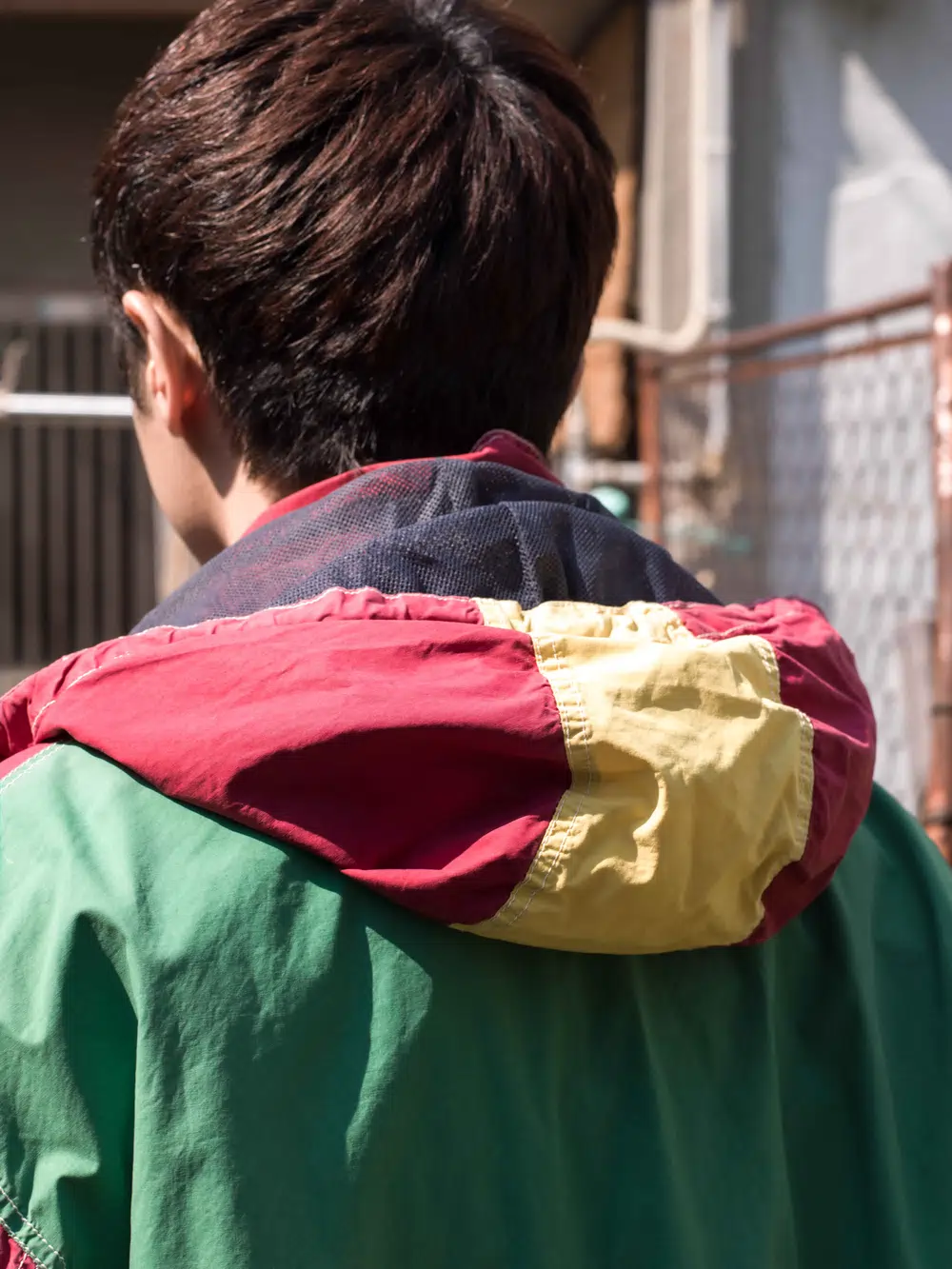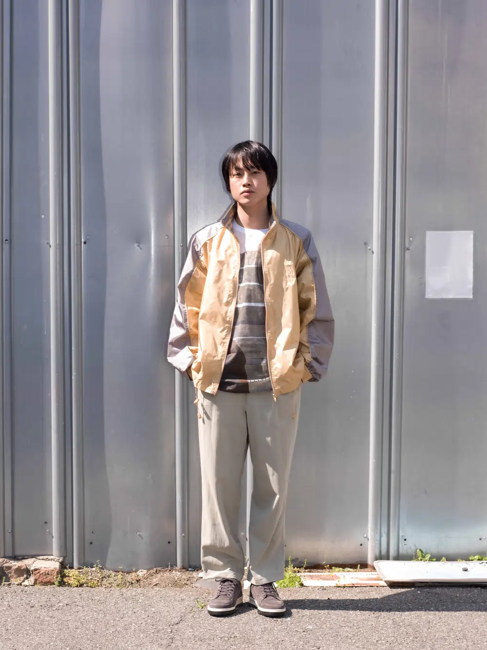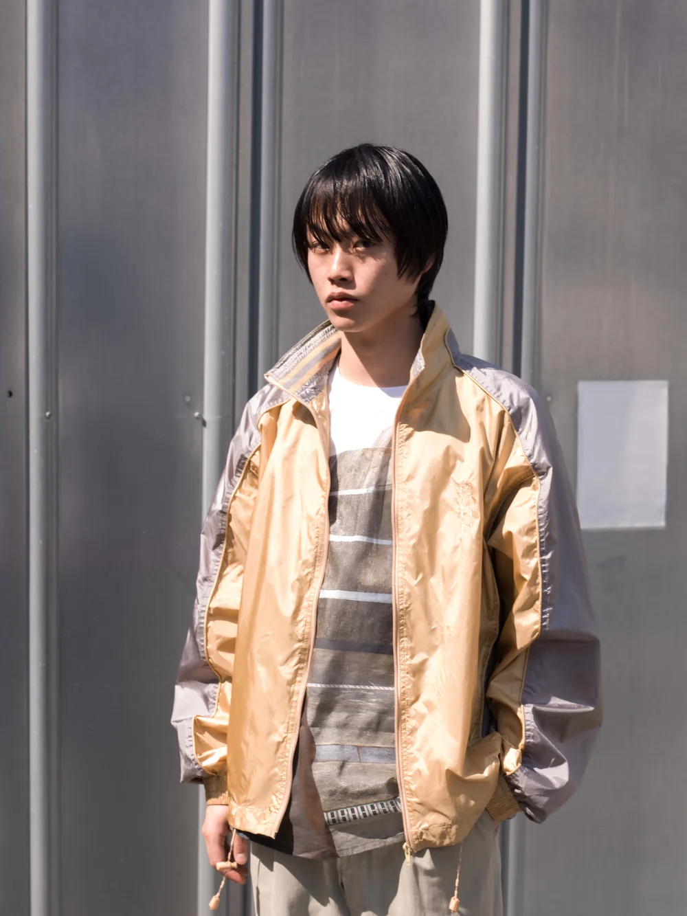 「<BLESS(ブレス)>のホリデーティーにレイヴウェアブランド<Fishbone(フィッシュボーン)>のナイロンジャケットを合わせたベルリン合わせ。服の持つ背景を掛け合わせるのもスタイリングを楽しむ要素の一つだと思います。」