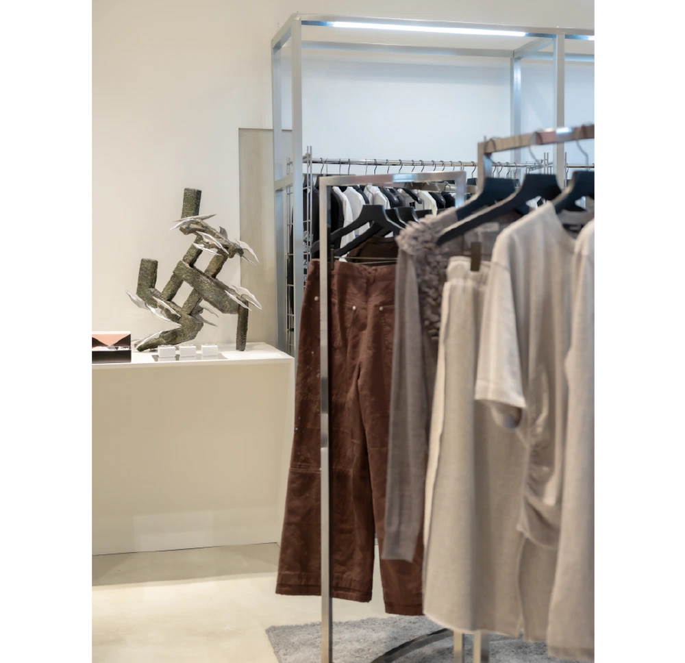「Rest!r」は「RESTIR」からは切り離し、インショップやポップアップで東京から離れた地域でも展開していきたいという。「RESTIR」といえば大人の欲望を満たすラグジュアリーセレクトショップとしてファッションフリークに支持されているが、「Rest!r」はそこに加えて「今らしさ」をより強く意識していくという。今回の渋谷PARCOのポップアップでは韓国のブランドやアーティストが顔を揃えるが「トレンドのキャッチや発信に瞬間風速のようなスピードを感じ、ブランドのプレゼンテーションにも勢いがある国のひとつ」と柴田はピックアップの理由を話す。「最旬のカルチャーに関心がある方が自然と集まるコミュニティのようなショップにしたい」というのが柴田が描く「Rest!r」の構想だ。「RESTIR」のオリジナルブランドであり2025年春夏にリブランディングした<LE CIEL BLEU(ルシェルブルー)>の提案も「Rest!r」だからこその新しさを模索していきたいとも。ショップ名に「!(エクスクラメーションマーク)」が使用されているが、「Rest!r」に期待したくなるのは驚き、発見、感動などまさに「!!!」にあふれる出会い。それをきっと叶えてくれるに違いない。