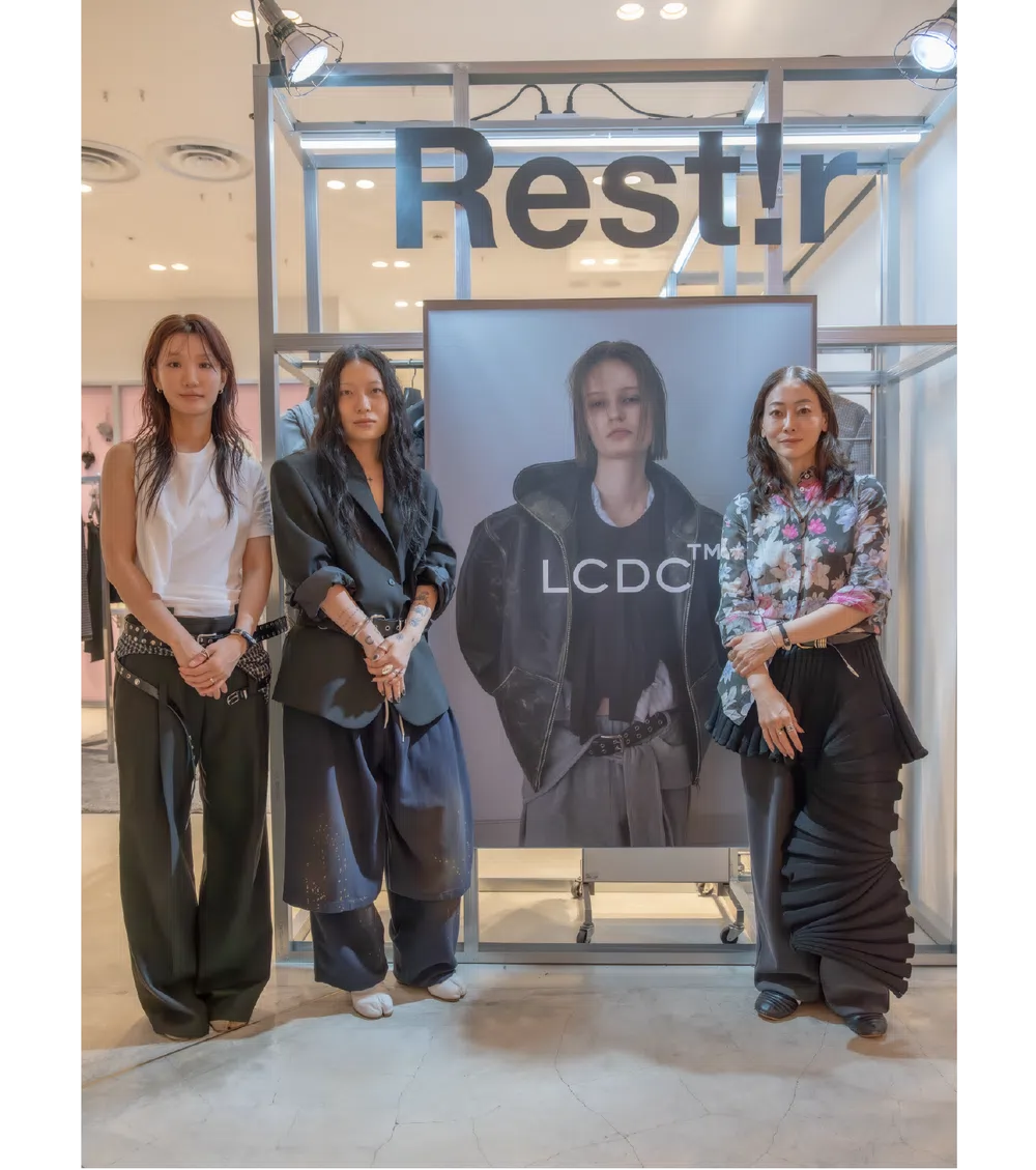 「Rest!r」というイベントのおかげで日本のお客さんと接する機会を得ることができたので、服についてだけではなく、<LCDC>のコンセプトや考え方など大切にしている価値観まで伝えていきたいです。<LCDC>には5wayのカットソーなど、どうやって着たらいいの?って服も多いんです(笑)。私たちもたくさん説明したいので、なんでも聞いてください!