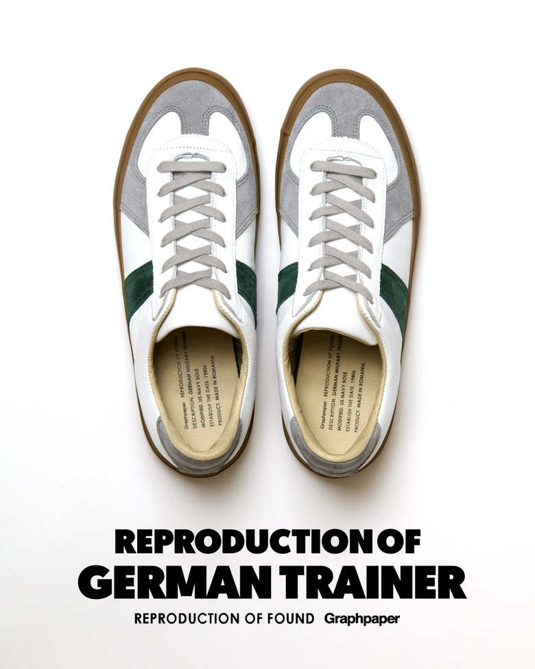 <Graphpaper>と<REPRODUCTION OF FOUND>によるコラボレーションシューズ「GERMAN MILITARY TRAINER」を発売。