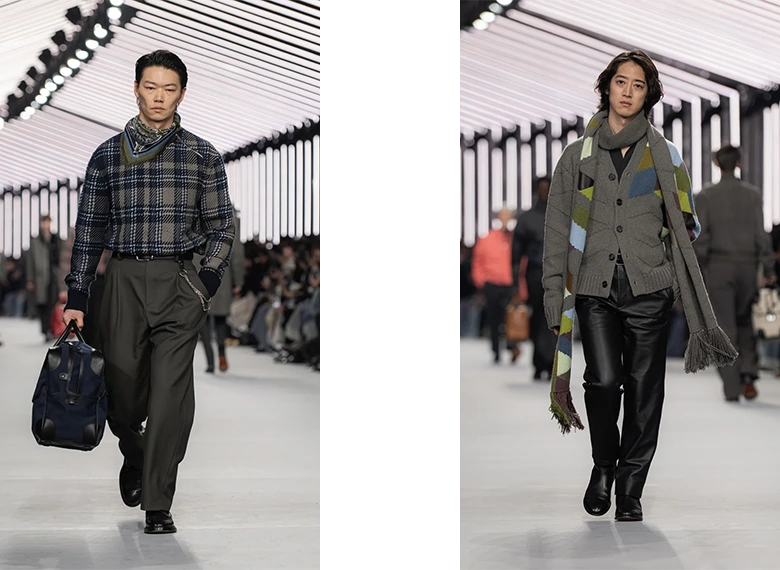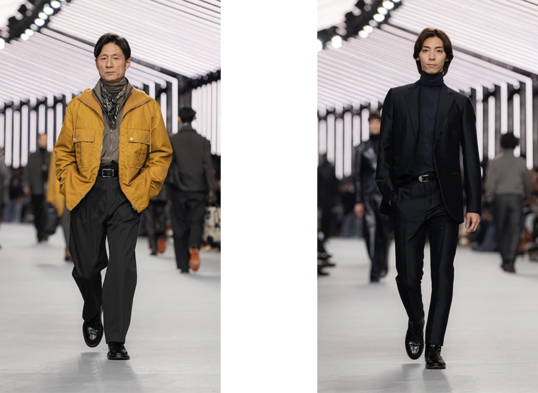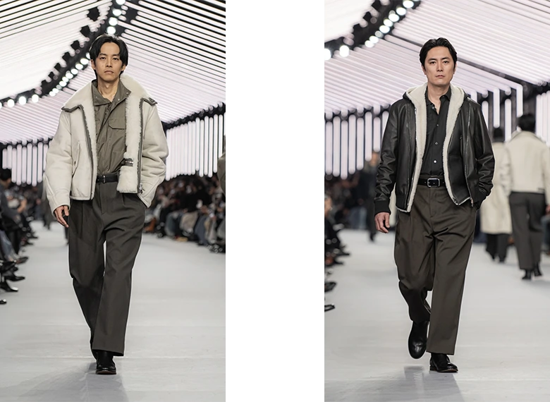 本コレクションは、進化し続ける男性のワードローブを描く物語として構成。季節や年月を超えて着用できる普遍的な男性像を提示する。肩の力を抜きながらも揺るぎないスタイルという、ニシャニアンが37年かけて築いてきた<HERMÈS>メンズの哲学があらためて示された。