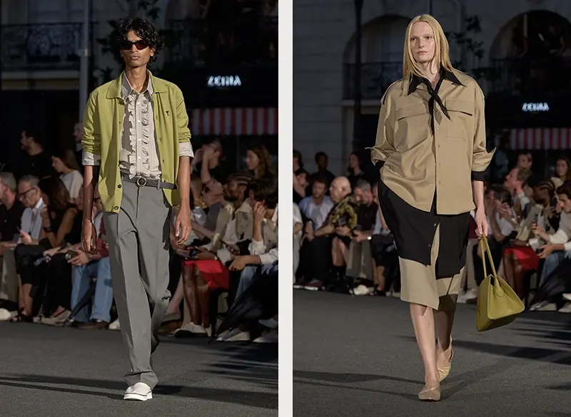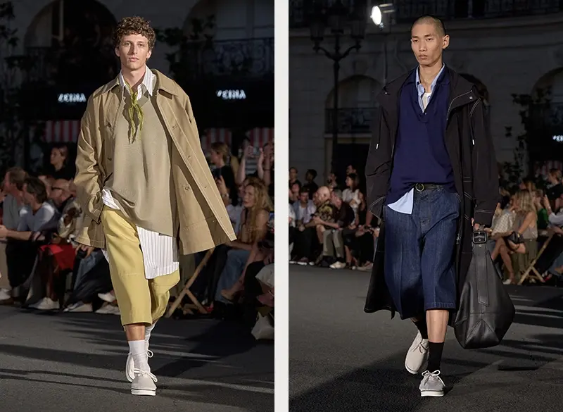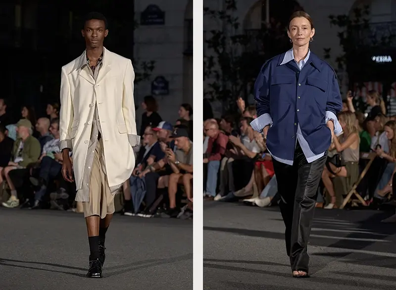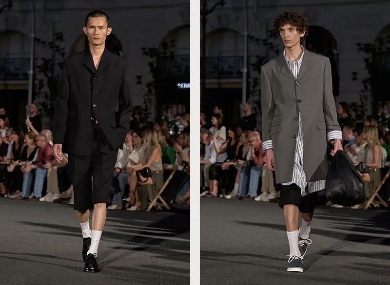 シャツの着こなしや袖のまくり方、小物の選び方、靴の合わせ方、日常のささいな着こなしの違いから、その人の人生が自然とにじみ出てくる。 伝統と革新が交差するヴィクトワール広場という舞台で、<Ami Paris>は“街=人生”という視座を通じて、「服とは生き方であり、そこにこそ美が宿る」というメッセージを見事に描き出した。