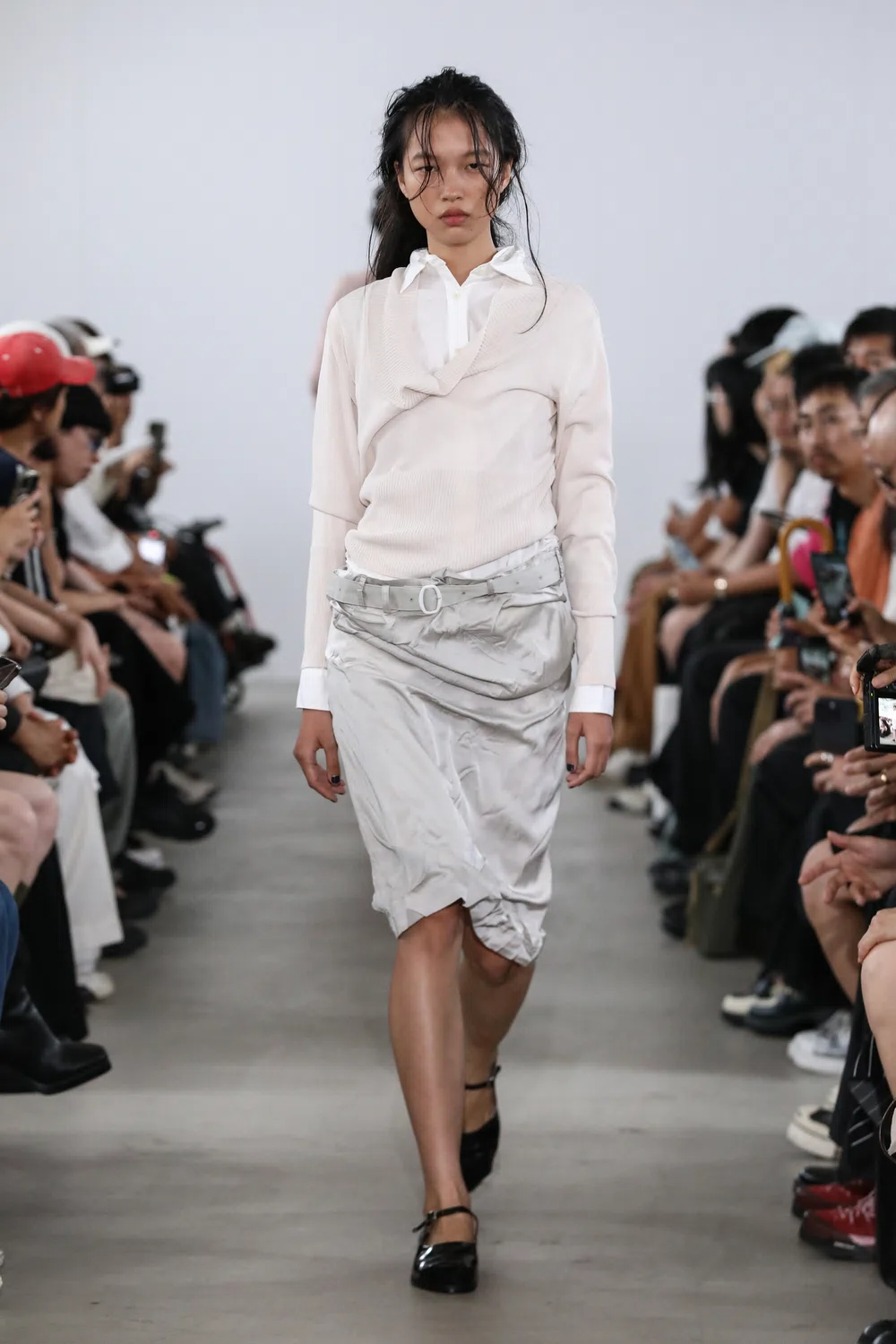 今季のリ・スタイルは、コンセプチュアルなファッションをお客さまの日常とつなげていくことがお題目。テーマは「ライフスタイリング」。洋服のスタイリングとは人生のスタイリングそのものである。リ・スタイルはそのお手伝いをしたいというメッセージを込めた。ヒントになったのは今季のハイライトだった<pillings(ピリングス)>。日常とコンセプチュアルなウェアがシームレスにつながった見事なショーだった。村上亮太デザイナーの「まいばすけっと」をモチーフに日常をクリエイティブに切り取り、デザイナーズの文脈でリアルクローズを提案するアプローチがすごく響いた。現在、クワイエット・ラグジュアリーの基盤を追い風に、リアルクローズやストリートを得意とするメンズブランド勢が世界で躍進している。一方で、コンセプチュアルなレディースデザイナーズ勢にはやや停滞感を感じている。レディースではリアルクローズだけでは差別化が難しく、大きな変化を生むことは容易ではない。そんな中で、村上亮太デザイナーは「日常をコンセプチュアルにデザインする」という新しいアプローチを見せた。決してリアルクローズに寄せすぎることなく、しっかりとデザイナーズという文脈の中で日常を切り取ったことに衝撃を受けた。これはレディースデザイナーズにおける大きな突破口になると感じている。