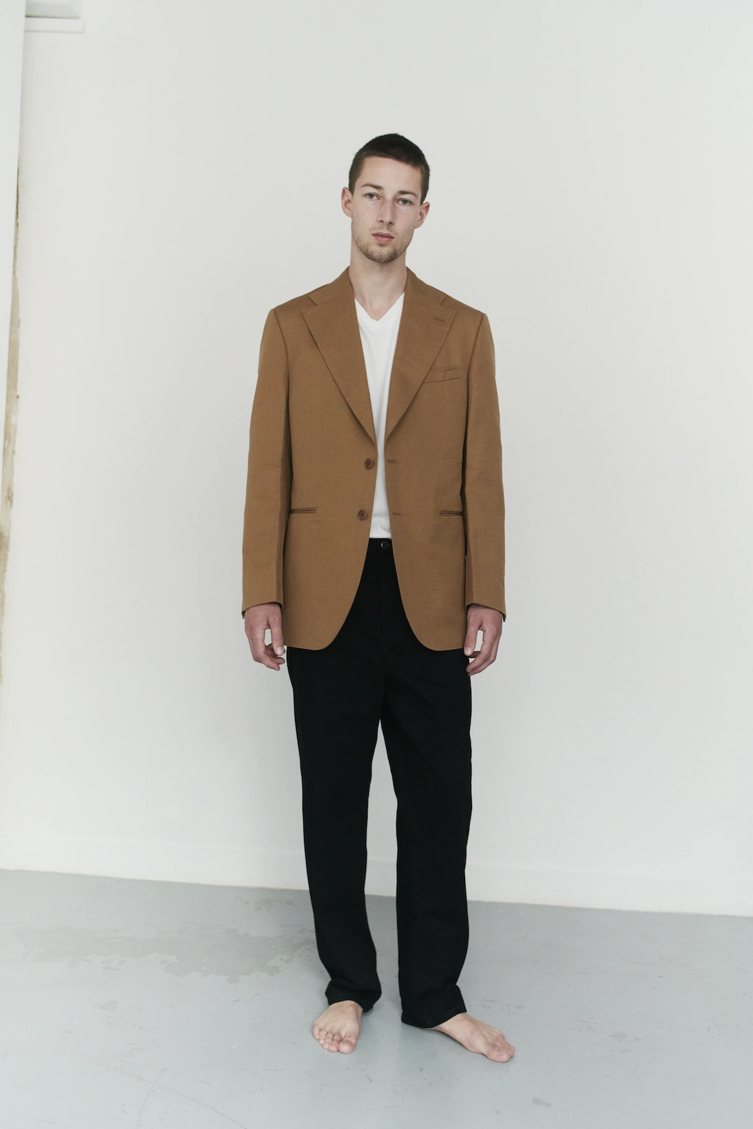 2024年にパリの展示会で初めてフルコレクションを拝見させていただいたブランド。デザイナーはスウェーデン出身で過去に<Acne Studios(アクネストゥディオズ)>のヘッドデザイナーを務めていた。初めて見たジャケットは仕立てと生地の両軸でハイレベルなブランドでした。International Gallery BEAMSはレーベルの軸として「ドレス」が要素として入っているため、<SALON C. LUNDMAN>のようなブランドは僕たちにはすごく魅力的で、整合性があると考え、買い付けに至りました。オーセンティックでミニマルなムードですが、カットソーやニットの袖口のディテールなどはかわいらしさもあり、「真面目な服を本気で作り遊び心を少し入れるセンス」が個人的には好きなポイントでもあります。