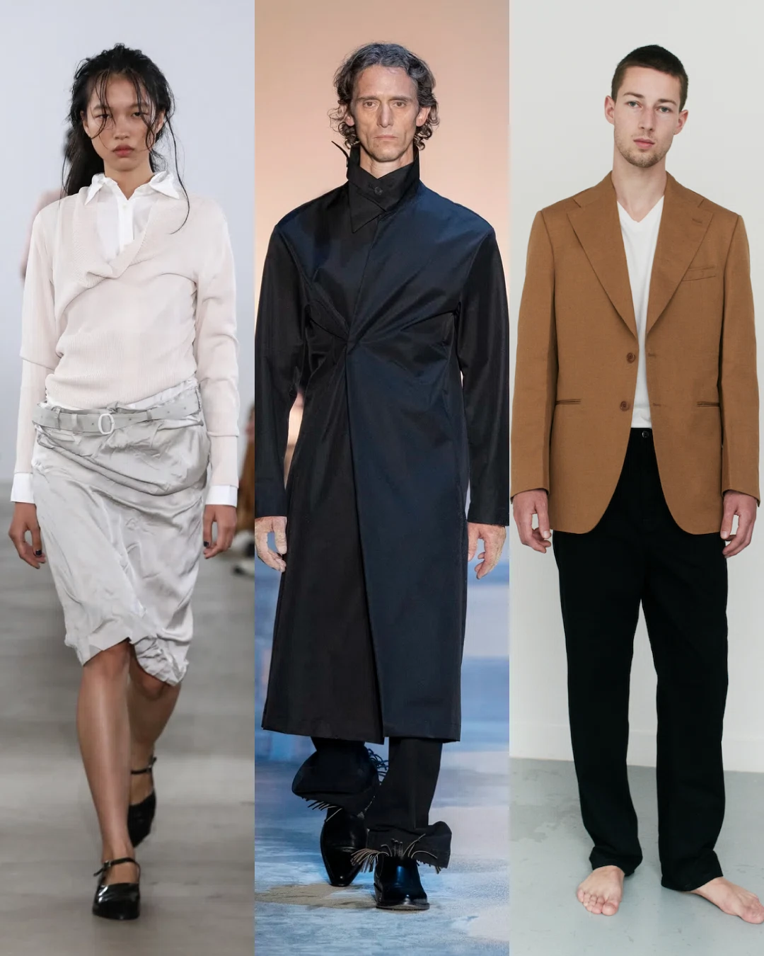 2026年春夏ロンドンファッションウィークにてデビューコレクションを発表した、<Rory William Docherty(ロリー ウィリアム ドハーティ)>。アーティスト兼デザイナーがニュージーランドを拠点としていて、不均衡なバランスで構築され、ややゆったりとしたシルエットが特徴的なブランドです。そんなモード特有のムードを醸し出している一方で、落ち着いたカラーバランスと素材感によって優雅さも感じられます。テキスタイルに描かれているのは、全てデザイナー自身によるアートワーク。そんなオリジナルのアート表現とリアルクローズとの融合は、アーカイブとしての価値を高める要因になるはずなので、個人的に注目しています。