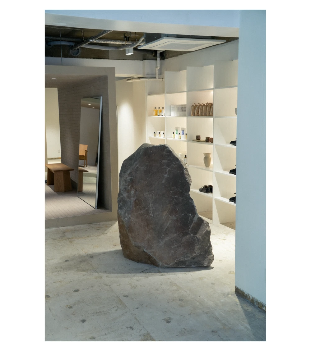 —大きな石がオブジェとして置いてあったり庭園を思わせるような店内なのでくつろぎながら買い物を楽しめそうです。内装はちょっと落ち着いた大人のムードですが、それも街の雰囲気と合わせているのでしょうか。