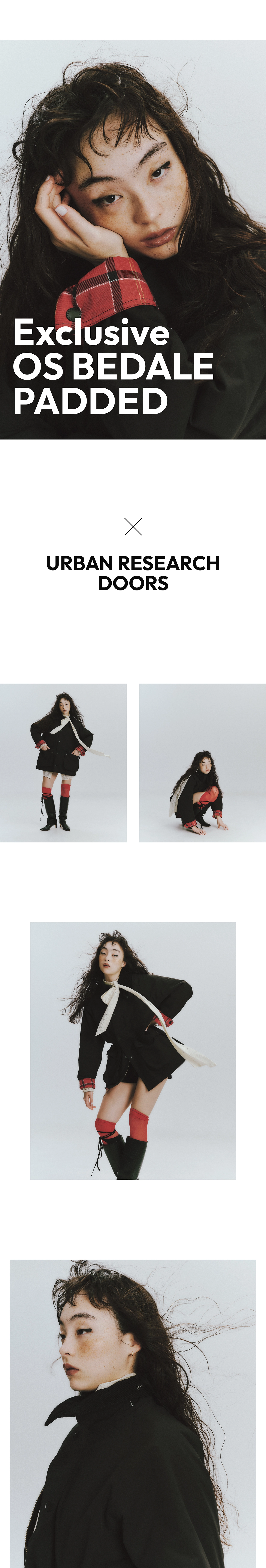 URBAN RESEARCH DOORS の今季別注「OS BEDALE」は、メンズモデルをベースに、中綿仕様と撥水素材で再構築された特別仕様。ドローコードがウエストのシルエットを自在に操り、着る人の感覚に研ぎ澄まされたニュアンスを添える。