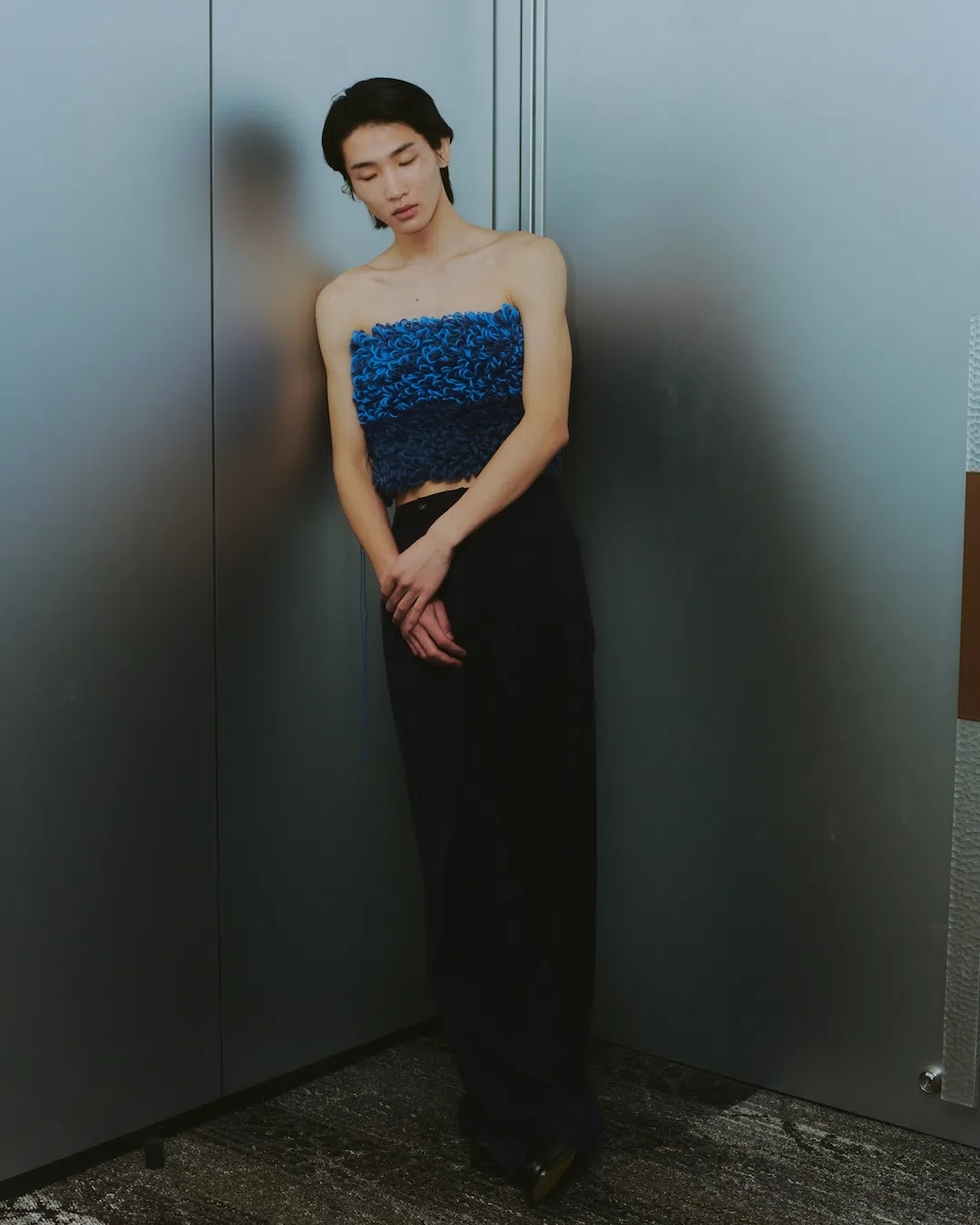 ランウェイでは、力強く歩く女性モデルと、飄々とした態度で歩く男性モデルが混在し、ジェンダーの境界を曖昧にする演出がなされた。「女性が強く、男性がフェミニンであること。それが固定観念を覆す手段であり、性別にとらわれない自由な表現を目指した」と佐々木は語る。性別の境界を揺るがすこの試みは、ファッションの枠を超えたメッセージとしても注目を集めた。