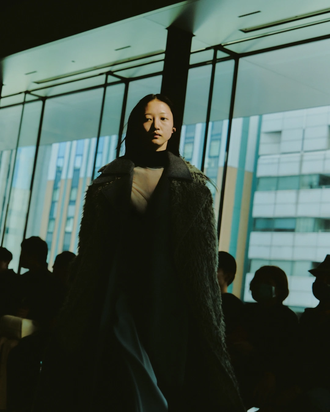 クリーンでエレガントなムードを保ちながらも、大胆なカッティングや裾が捻れたカットソーなど、春夏からのディテールが継承され、ファンを魅了した。足元を彩るシューズも「可愛い」と評判に。会場に流れたアップテンポなテクノは、佐々木のアトリエで常に流れている音楽だという。感情と知性が交錯し、ロジックを超越した感覚的な空間に、観客たちは引き込まれていた。