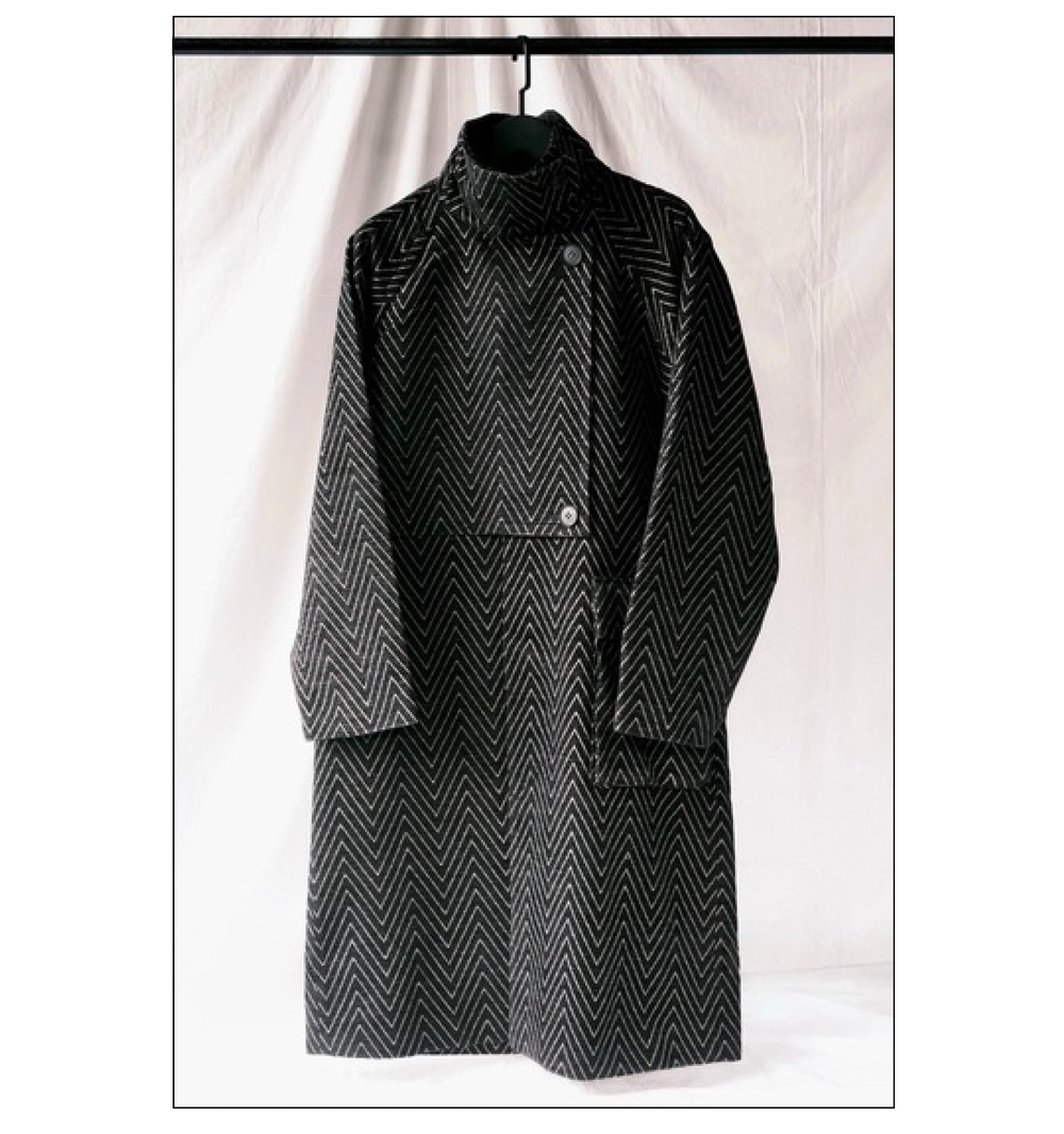 「モール糸を用いたシルク100%のコート。非常に軽く、滑らかな質感が特徴です。特に注目したいのは、そのデザイン。<HAIDER ACKERMANN(ハイダー アッカーマン)>を思わせる大胆なアプローチがあり、先ほど述べたように、現在のドメスティックブランドにはなかなか見られない要素だと感じます」。