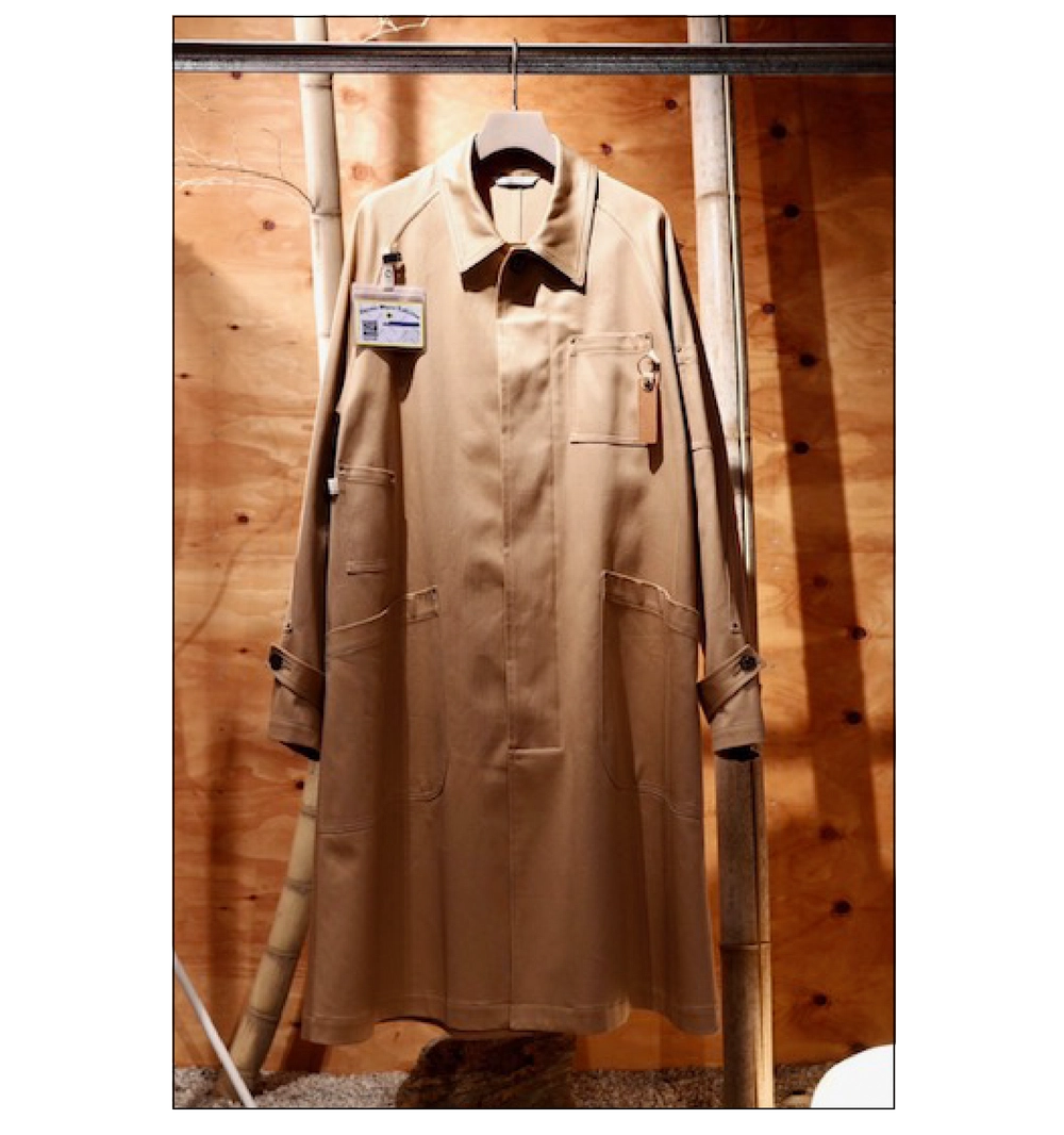 「最初のコレクションで印象的だったモーターサイクルコートを、2025年秋冬仕様に再解釈した一着だと思います。程よい打ち込みのあるドリル素材は、ワーク特有の無骨さとは異なり、柔らかさと上品さを併せ持っています。リベット打ちにも耐えうる絶妙な肉厚でありながら、仕立ての美しさも備えている。無骨なワークコートを洗練させ、<YUTASETOGAWA>らしく昇華したコートです」。