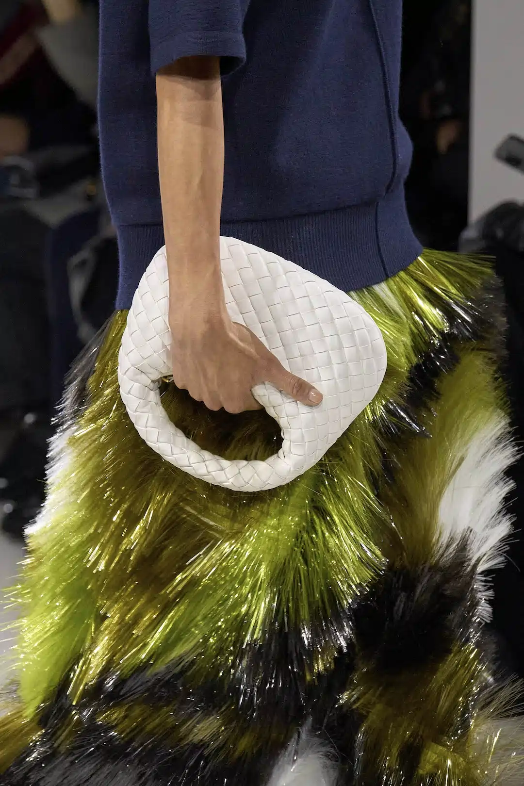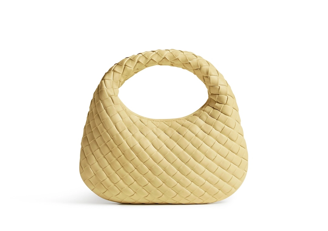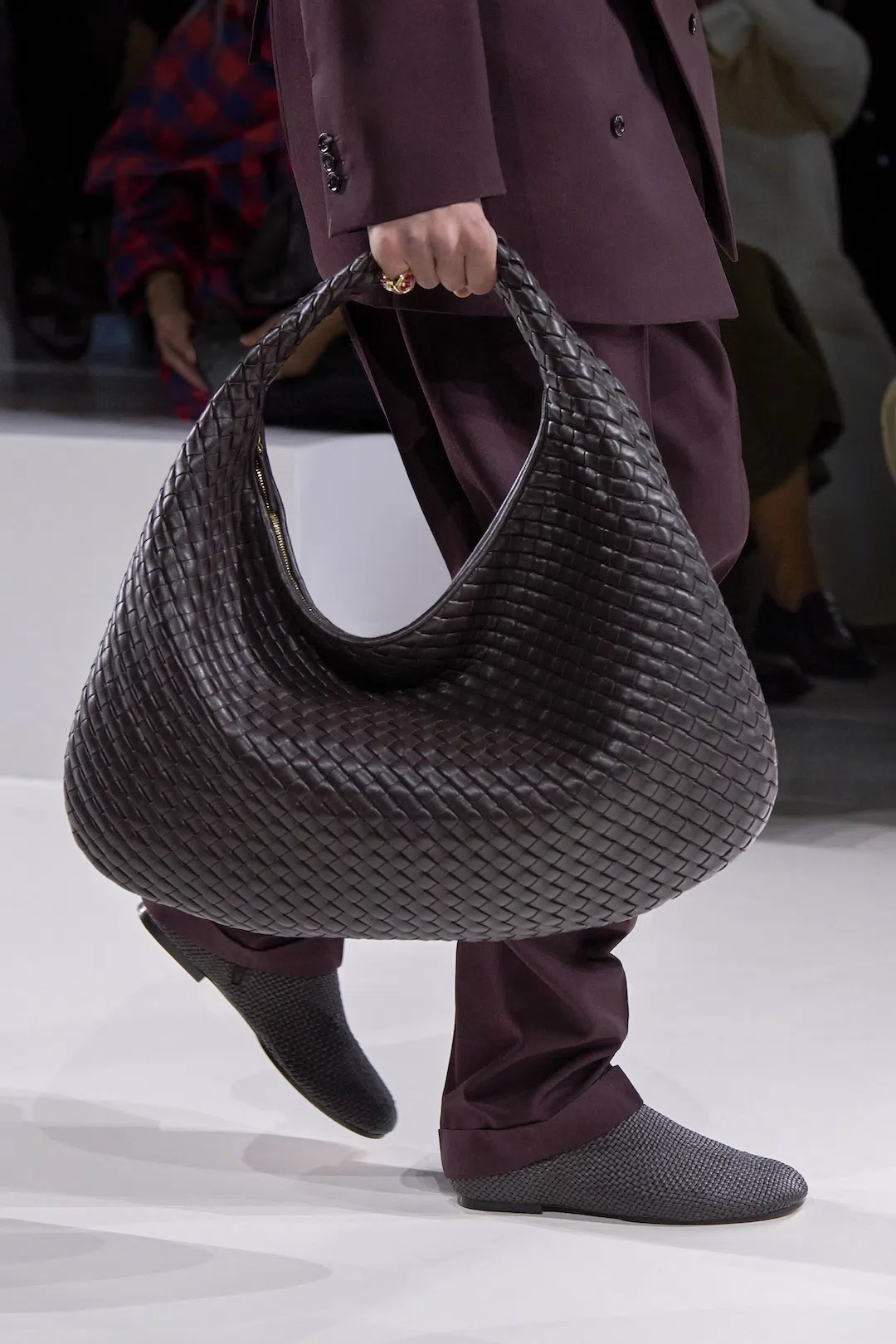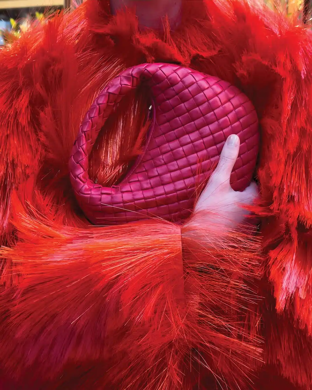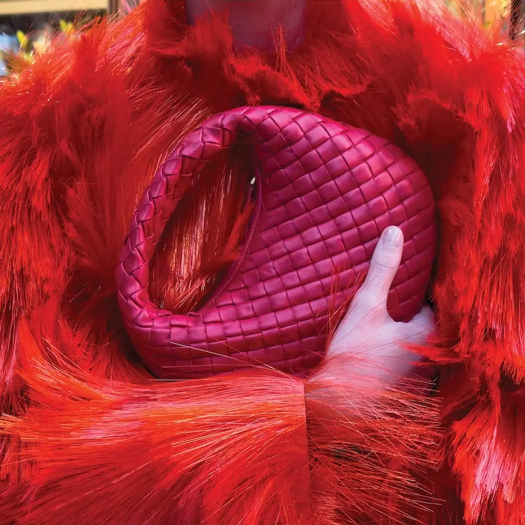 当時のハンドバッグは、形を美しく保つことを前提に、芯材でフォルムを固定する硬い作りが主流だった。そうした背景のなかで<BOTTEGA VENETA>は、革を細く裁断して編み込むことで、身体の動きに寄り添うしなやかなバッグを生み出すという発想にたどり着く。