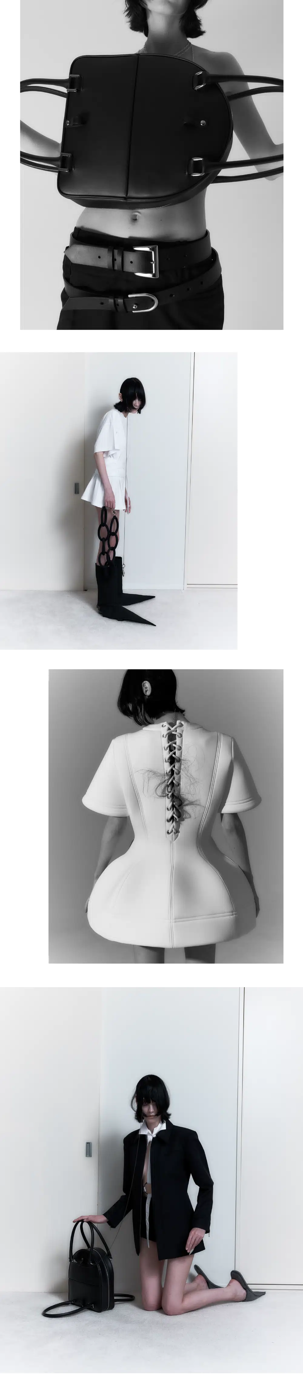 森:本当にそうなんです。2026年春夏コレクションは「EMBODY」がテーマなんですけどそれも最後に出てきたワードで、私の中にあったのは「身体(からだ)」という単語だけでした。それが「整形」や「タトゥー」のようなワードに分裂していって、一着一着のインスピレーション源になっていきました。最近ロンドンに行ったときに目にしたマネキンのディスプレイが私が発信したかったことを体現していて、最初は感覚的に浮かび上がってきた「身体」という言葉の強度が高まって「EMBODY」に終着した感じです。