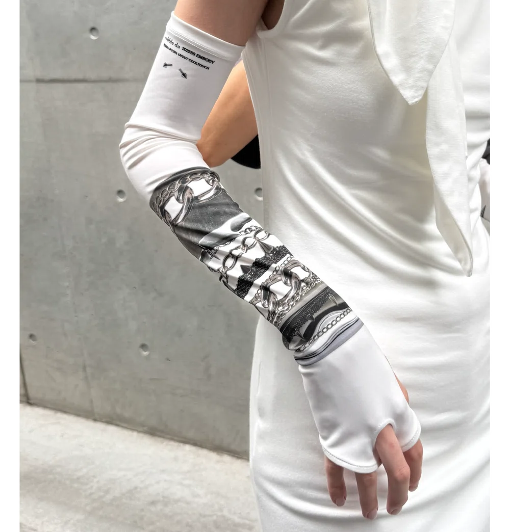 森:中指の部分だけが空いている袖のデザインがあって、これまでにロングドレスやカットソー、ニットなどで展開してきて2026年春夏はUVケアグローブを作りました。そのデザインを装着することで少し強気になれるような気持ちの変化があるといいなと思ってファーストから継続させています。
