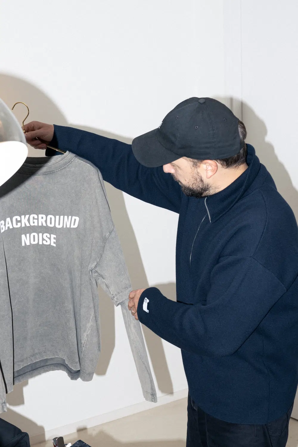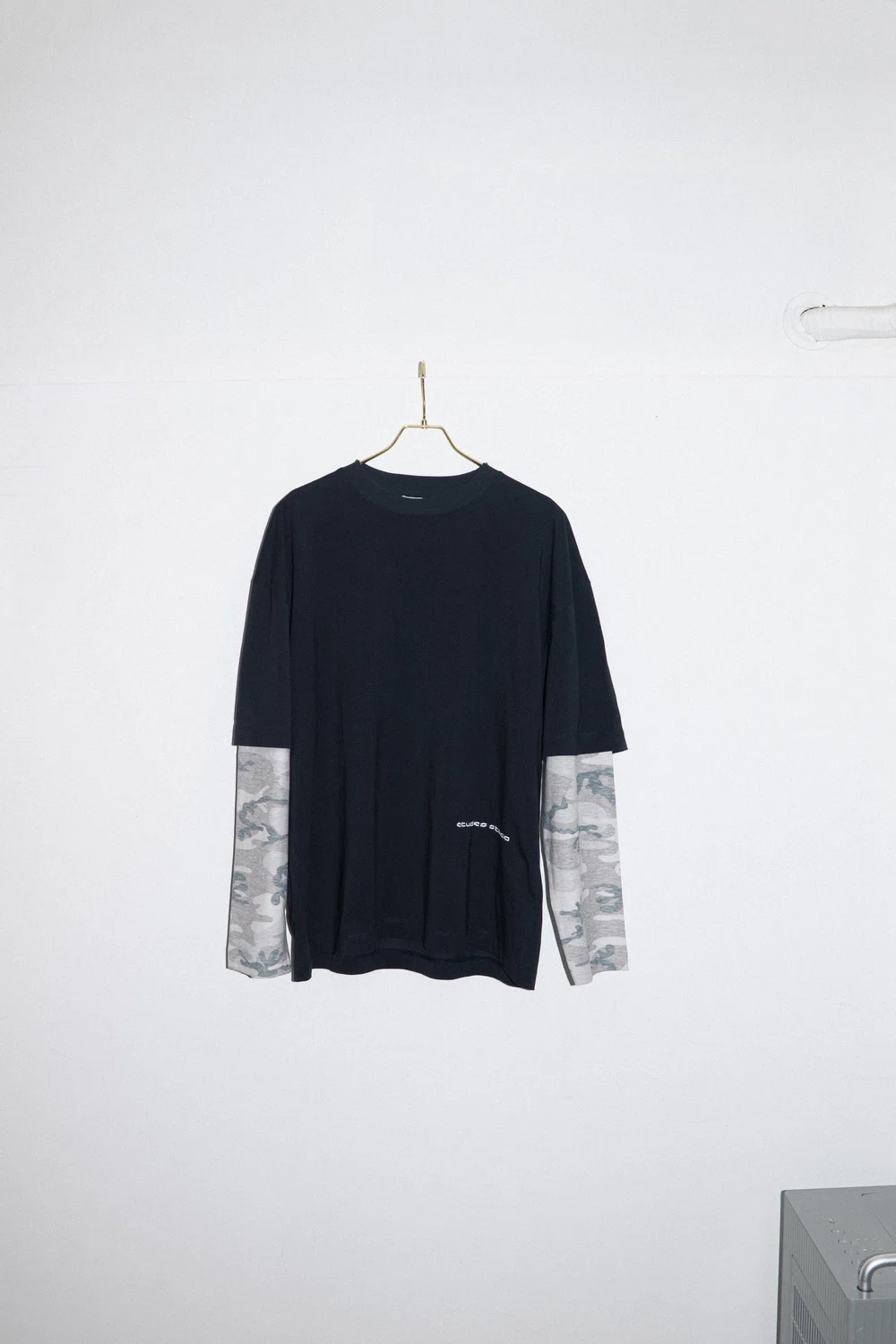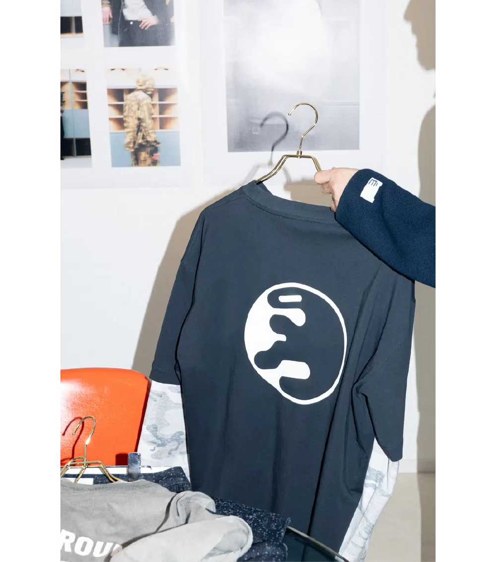 アルベ:ジャケットに施したドットのような模様は音を視覚化したものです。大きさも不揃いで、形も歪んでいて、その不規則さはノイズサウンドをイメージしています。フェイクレイヤードのカットソーはライブなどでミュージシャンが着ている衣装のイメージです。ミュージシャンが何年も着続けているという想定で、色もあえて経年変化を起こしたかのようにくすませています。ロゴがアイコンになっているカットソーは、エイフェックス・ツインのロゴを手がけたポール・ニコルソンに今回のカプセルコレクションのためにデザインを起こしてもらいました。<Études Studio>のロゴも2000年代のテクノカルチャーから着想を得てデザインしています。