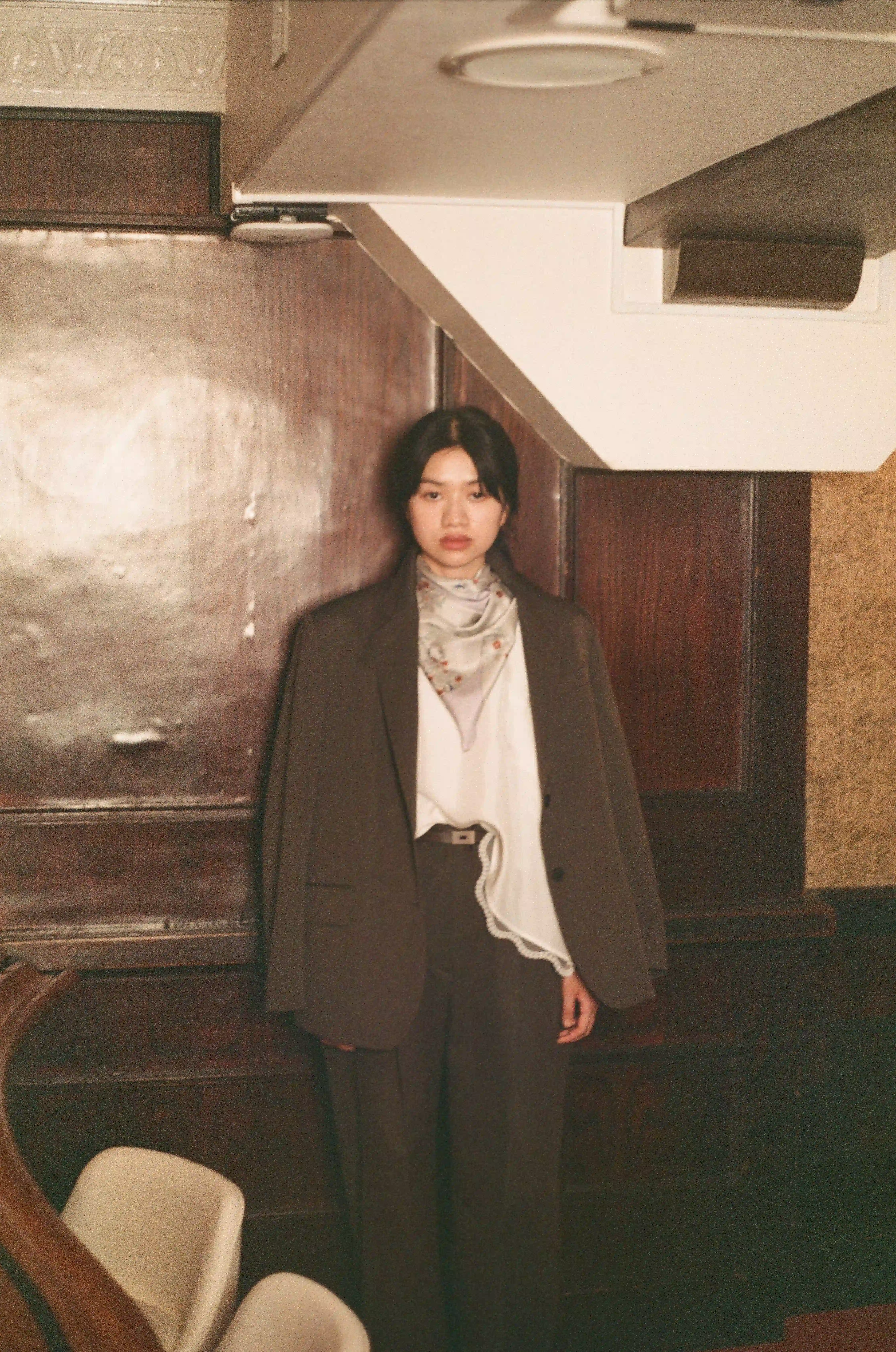 パク:ファーストコレクションに関しては自分のルーツとして韓国にこだわりたかったです。あの映画は東洋の端麗さと西洋の華麗さが調和したエキゾチックな雰囲気が漂う作品で、「朝鮮と和洋折衷」というコンセプトにも<OHROHEE>が得意とするテーラードアイテムにも通じるので題材として取り上げました。今後も韓国カルチャーと絡めて服づくりをすると決めているわけではありませんが、実は次のシーズンのテーマも韓国が関係しています。