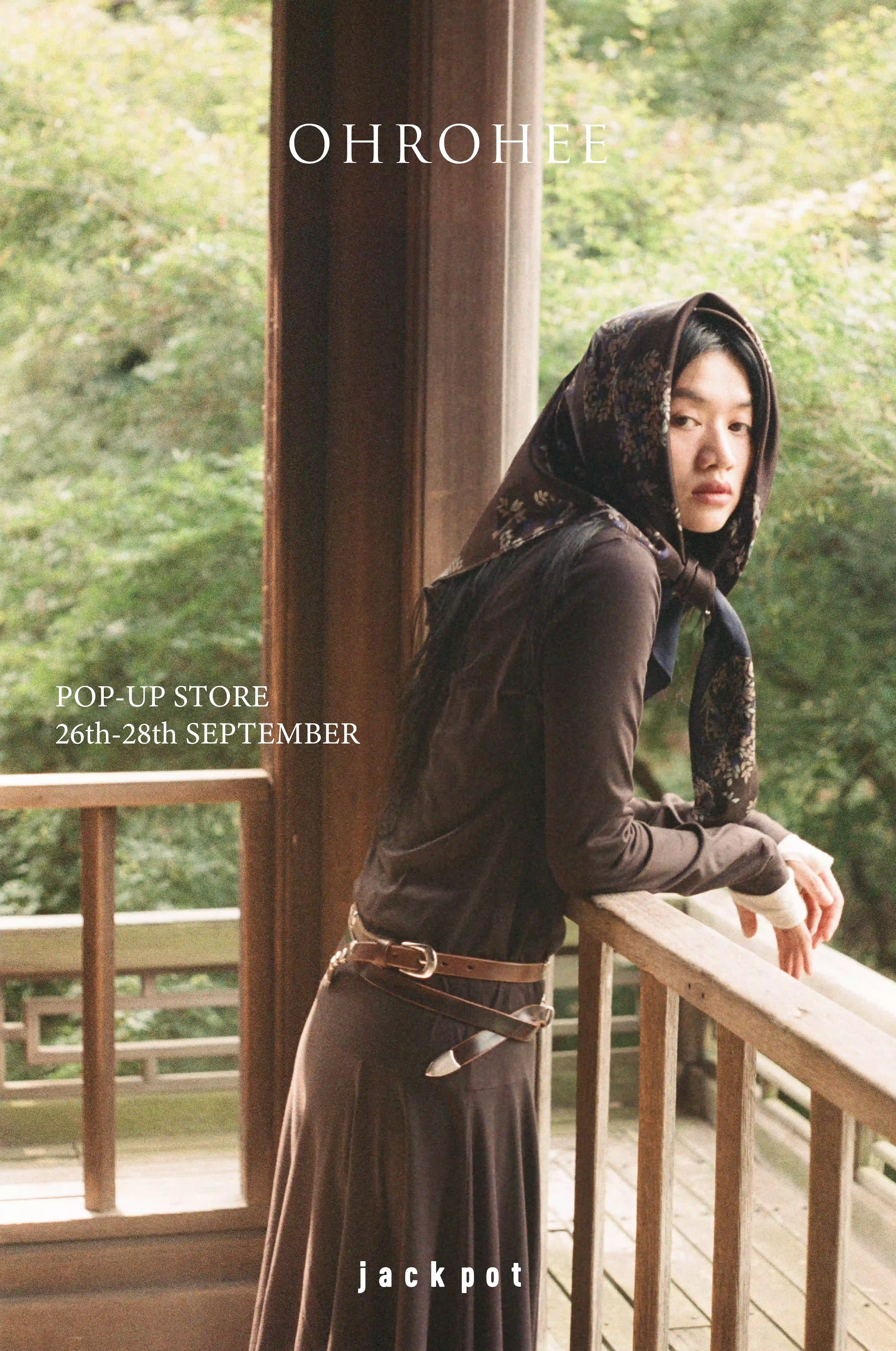 パク:私がプライベートで買い物に行くぐらい個人的にも大好きなショップだったので、<OHROHEE>を立ち上げたタイミングで「ブランドのお披露目となるようなイベントを開催させてもらえないか」と、こちらから声をかけました。今回のイベントの別注としてスカーフも製作しました。スカーフは「jackpot」がプリントの柄を気に入ってくれて、メンズでも使えるアイテムとして決まりました。いいアイデアが浮べば「jackpot」とのコラボレーションアイテムは今後も続けていきたいです。