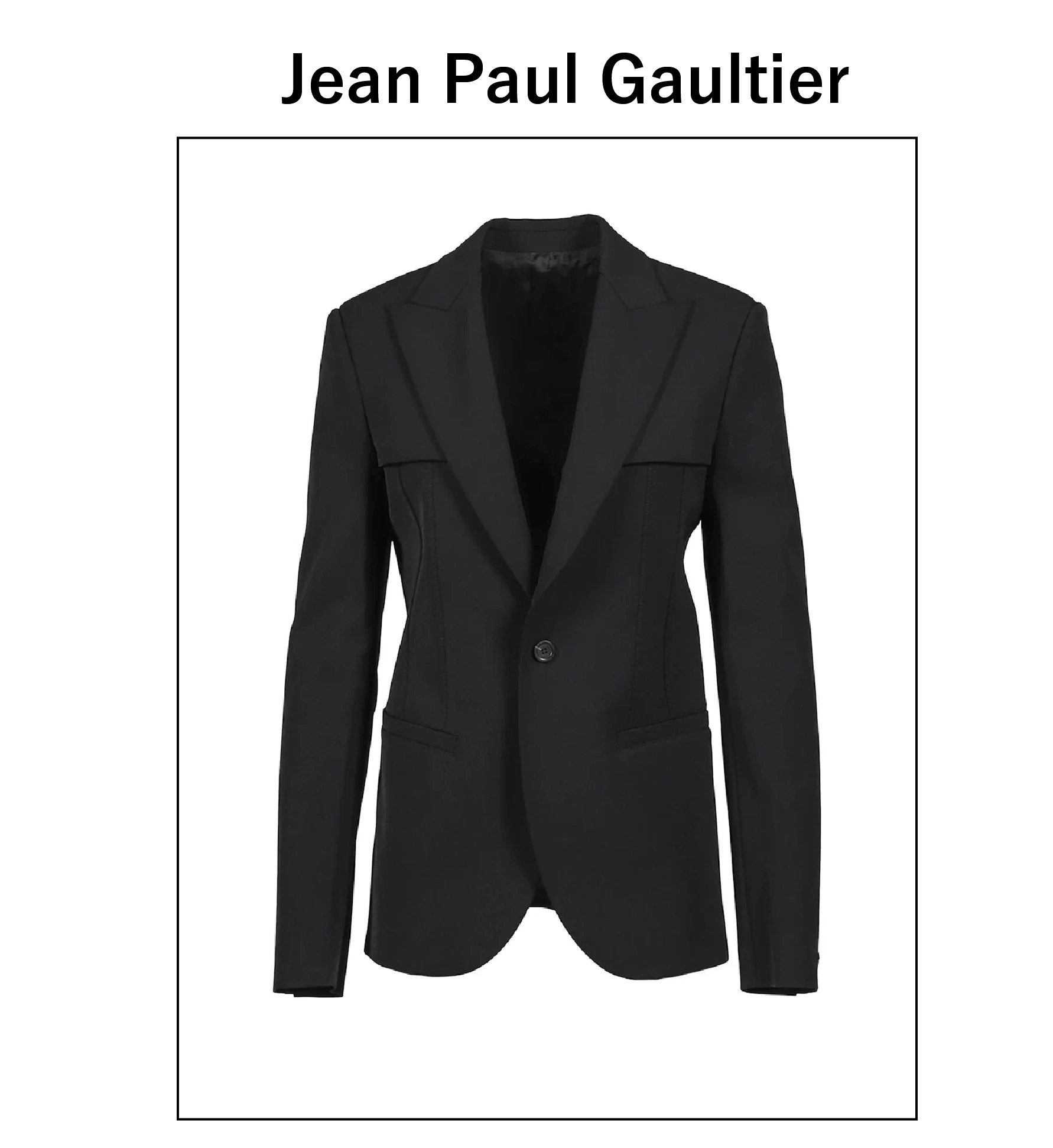 一見するとシンプルなテーラードジャケットですが、<Jean-Paul GAULTIER(ジャン=ポール・ゴルチエ)>ならではの構築的な美しさが際立ちます。素材とパターンが生み出すパリッとしたマニッシュな印象の中に、ウエストラインの繊細なシェイプが女性らしさを引き立てている点が秀逸です。