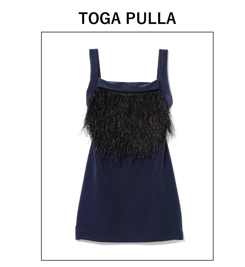 オーストリッチのファーが胸元に贅沢にあしらわれたタンクトップ