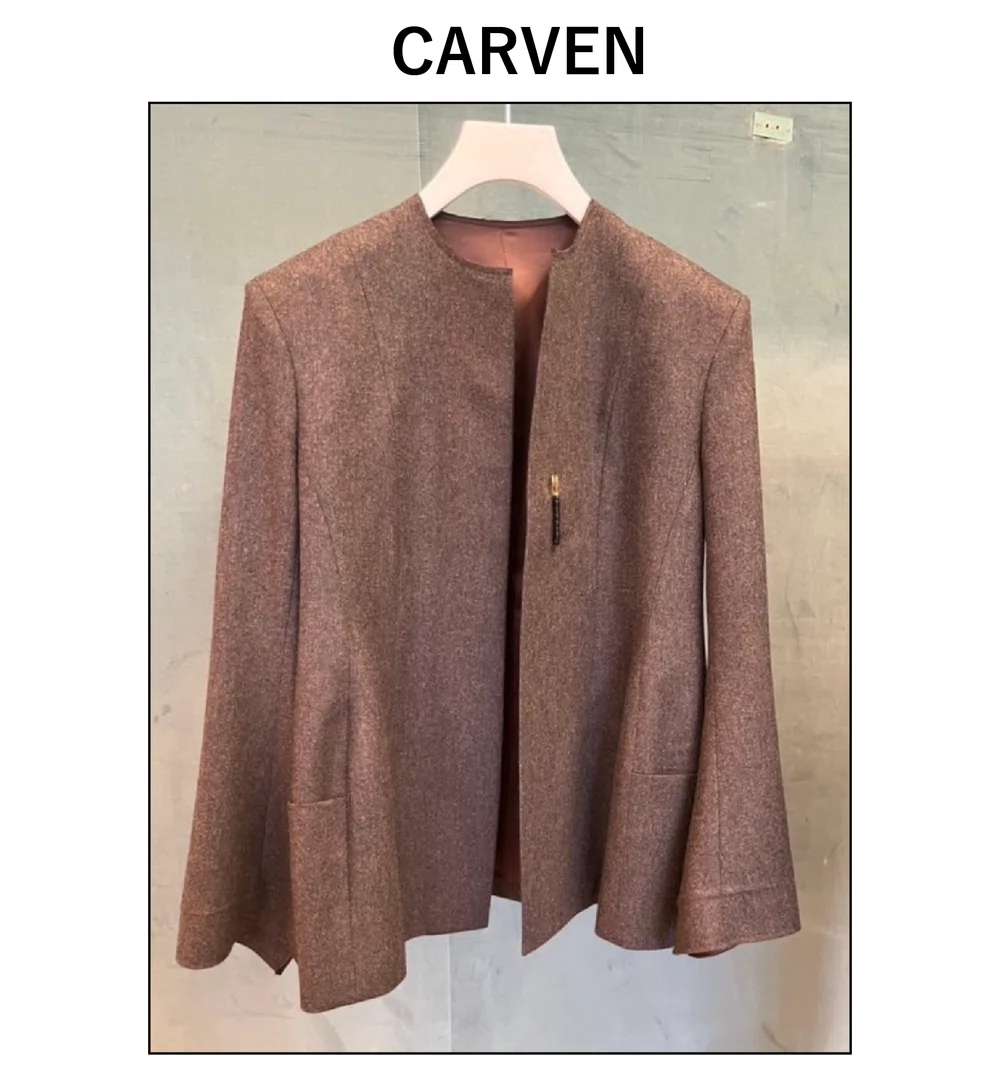 <CARVEN(カルヴェン)>の得意とする、緻密なテーラリング技術と女性らしい繊細な曲線美が際立つ一着。実用性と優美さ、そして力強さの中にふと覗く柔らかさ、相反する要素が見事に調和し、着る人の個性を引き立てます。流行に左右されず、永くワードローブに留めておきたくなる一着です。