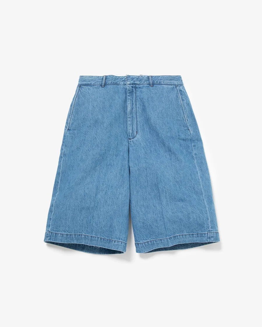 ミニマルデザインに漂う余裕、幅広シルエットのデニムショーツ