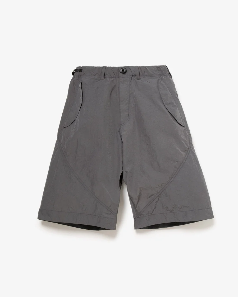 <Goldwin 0(ゴールドウィン ゼロ)>が提案する「HELICOID SHORTS」は、シワ感のある軽量ナイロンタフタ素材に、スパイラル構造の立体設計を融合させた一着。切り替えをなくし、3Dモデリングで設計されたアジャスターによって、快適さと美しさを両立。見た目はミニマルながらも、随所にブランドの先進性が凝縮された、まさに都市の夏にふさわしいショーツ。