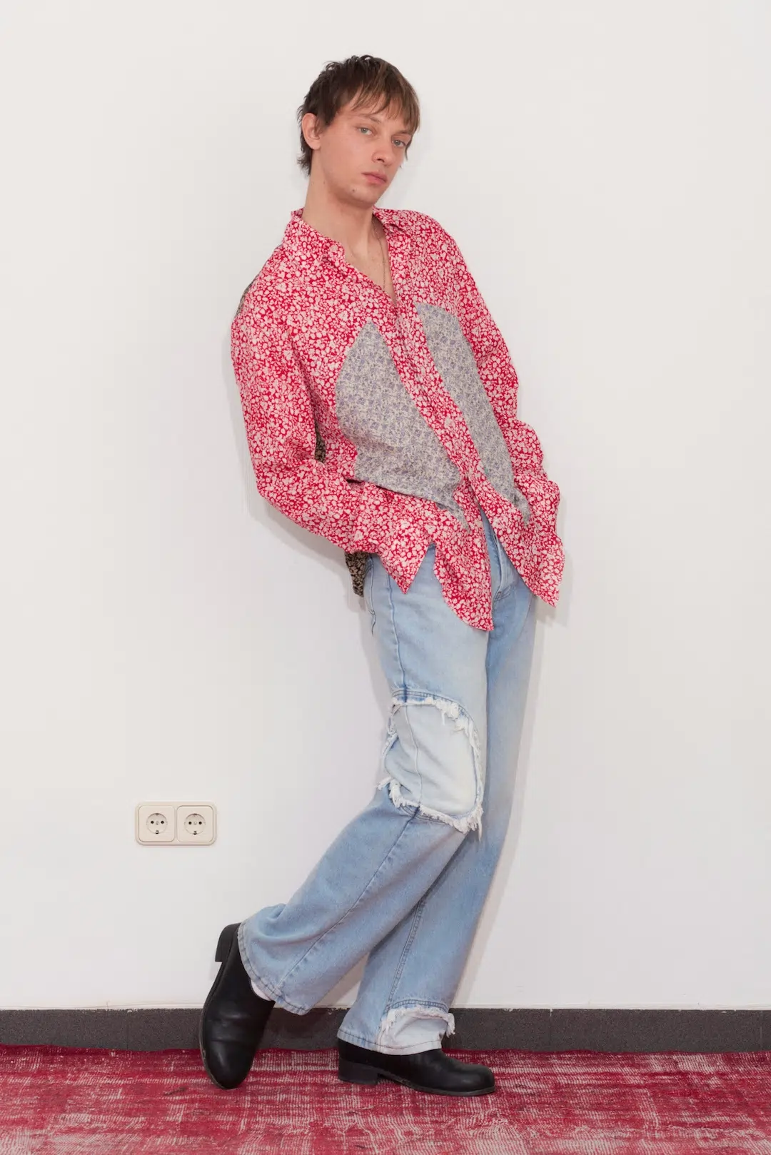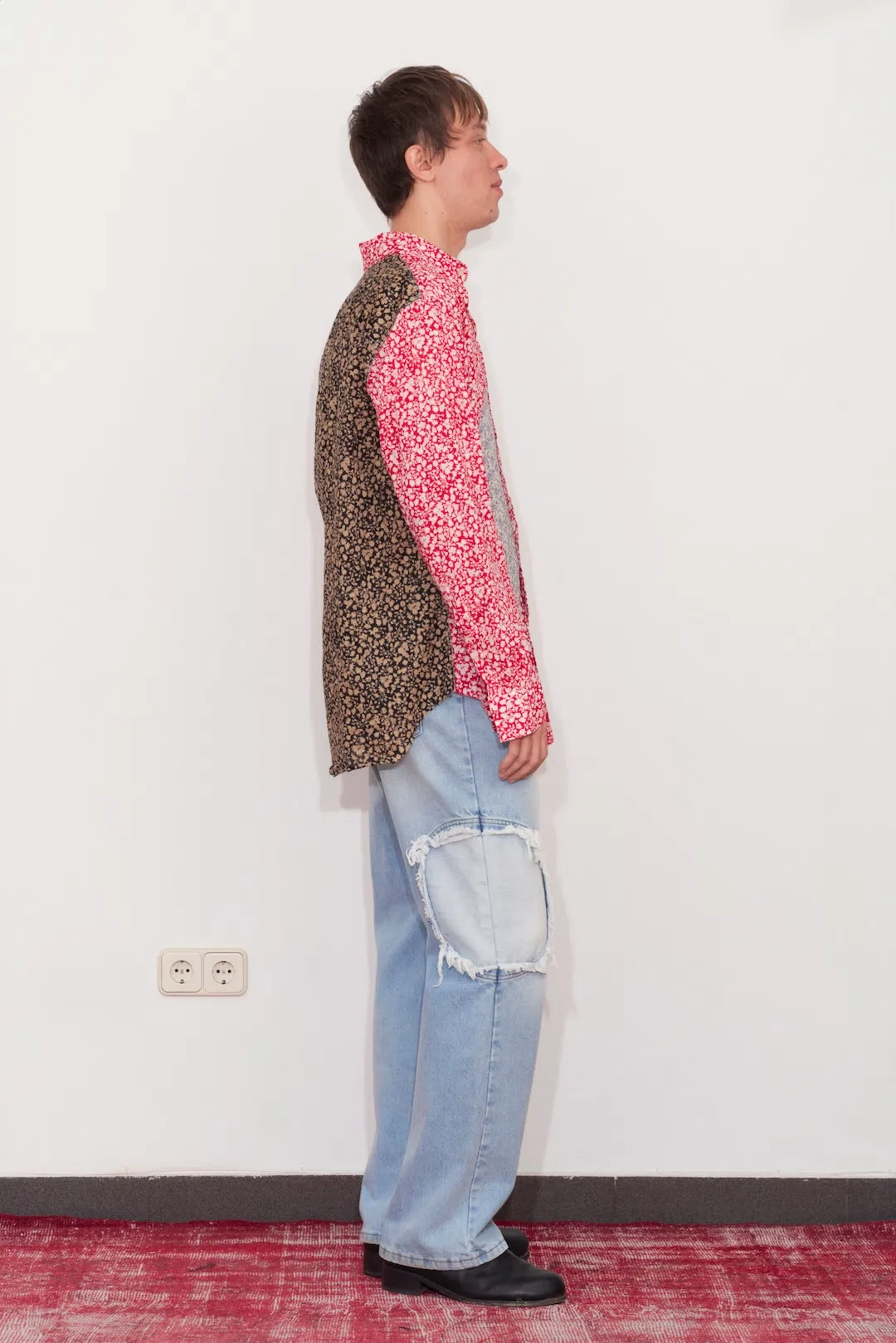 上質な日本製プリントコットンを贅沢に使用したシャツ。前後で異なるフローラルプリントを組み合わせ、胸元にはブランドの象徴とも言える“ラングウィンドウ”を配置。リラックスしたシルエットで、ユニークかつ洗練された一枚。