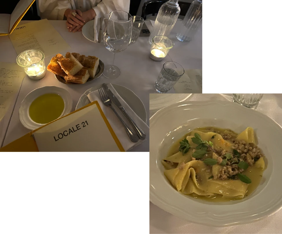 ショーの余韻を感じながら、夜は現地でも人気のイタリアン「LOCALE 21(ロカーレ ヴェンティウーノ)」でディナー。日本ではあまり馴染みのない“うさぎのラグーパスタ”を注文したのですが、とても美味しかったです!