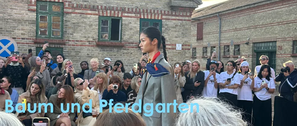 続いて向かったのは<Baum und Pferdgarten(バウム ウンド ヘルガーテン)>のショー。会場は中心地から車で20分ほど離れた郊外にありましたが、コペンハーゲン ファッションウィークではオフィシャルの無料シャトルバスが運行しており、ブランドからも送迎バスが用意されていました。わたしたちもそのバスに揺られて向かった先はなんと競馬場。干し草の香りが漂う独特の空気に、思いがけず特別な体験をした気分になりました。