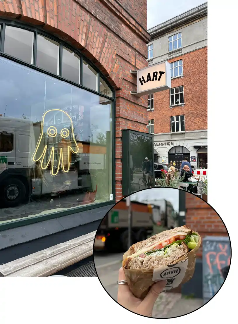 4日目は、定番ベーカリー「HART BAGERI(ハート ベアリィ)」で朝食を取ってからスタート。元「noma」のヘッドシェフ、リチャード・ハート氏が手掛けるベーカリーは、なんと市内に10店舗も展開する人気店です。滞在していたAirbnbの近くにも店舗があり、立ち寄りやすさも魅力!サンドイッチの美味しさには衝撃を受けて、他のパンも試しておけばよかった…と後悔が残るほどでした。